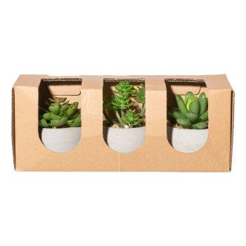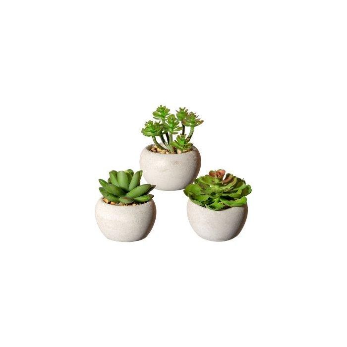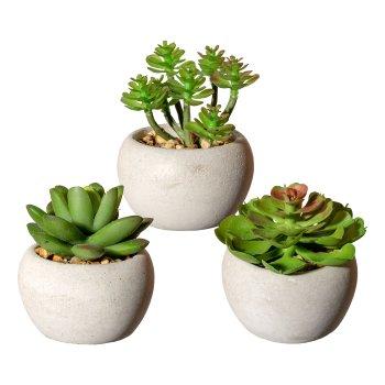 Arreglo de suculentas artificiales PLOKSA en maceta de cemento, 3 unidades, verde, 6,5-8 cm