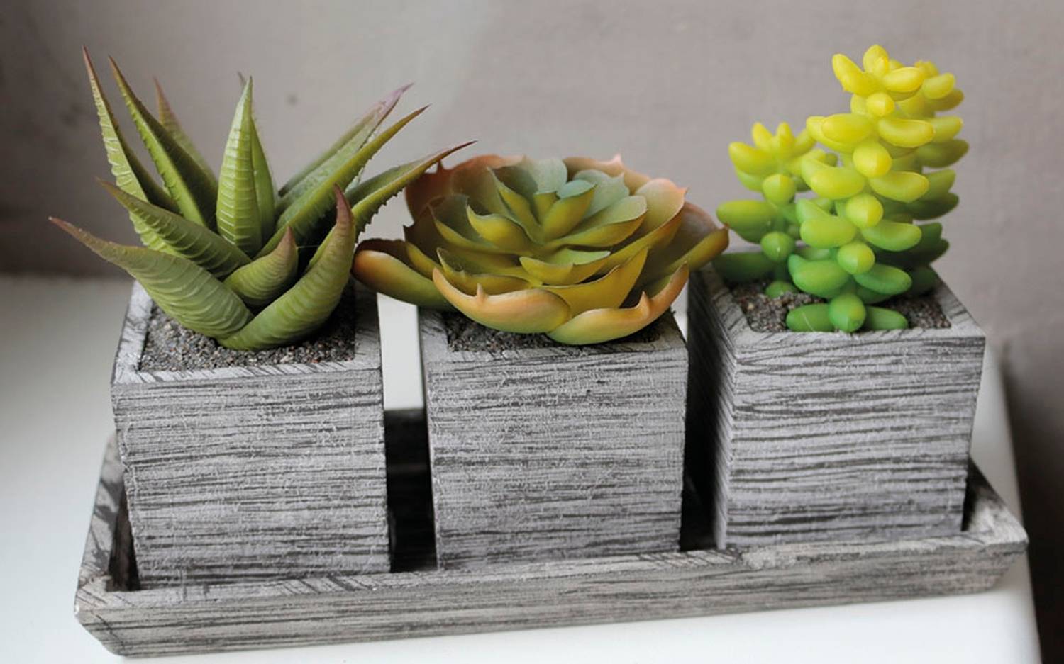 - 3 macetas (5x5x5 cm) firmemente sujetas a la bandeja decorativa