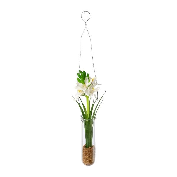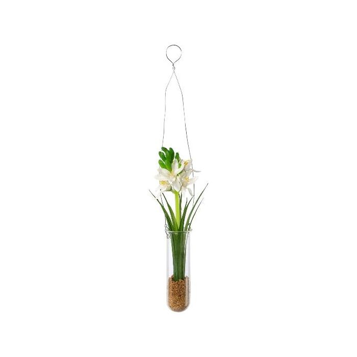 Arreglo floral artificial de jacintos FRUKE en jarrón colgante, crema, 35 cm