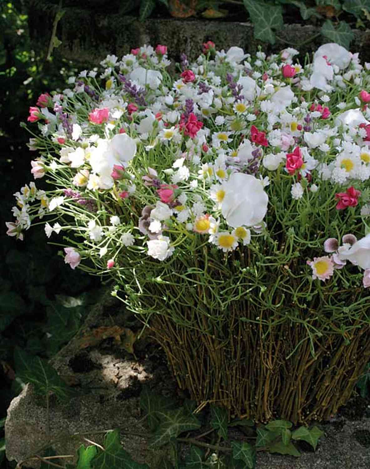 - Un arreglo floral de margarita, lavanda y aliento de bebé en el color multicolor de materiales de alta calidad