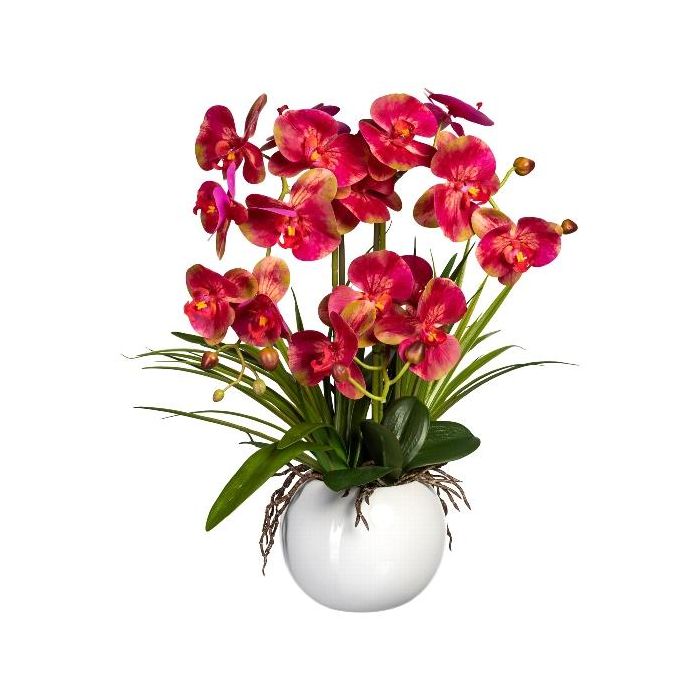 Arreglo floral artificial de orquídea Phalaenopsis TRALFEN con hierba, maceta de cerámica, raíces, rosa-verde, 60 cm