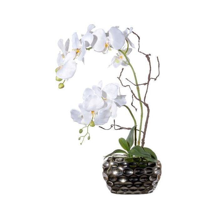 Arreglo floral artificial de orquídea y sauce retorcido TICHIO, jarrón decorativo, raíces, blanco, 55 cm