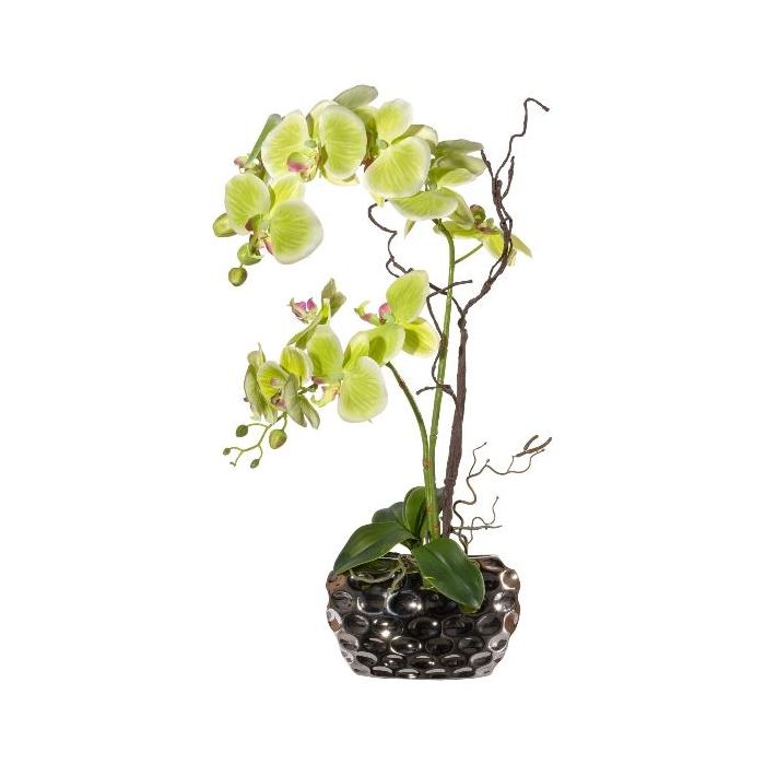 Arreglo floral artificial de orquídea y sauce retorcido TICHIO, jarrón decorativo, raíces, verde, 55 cm