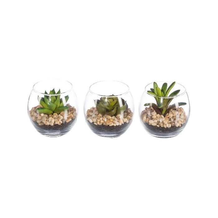 Arreglo floral artificial de suculentas WINKS en vaso, 3 unidades, verde, 7 cm, Ø 7,5 cm