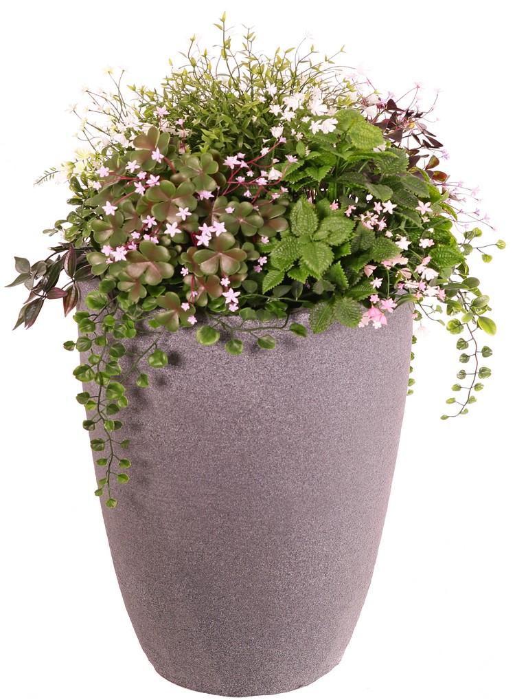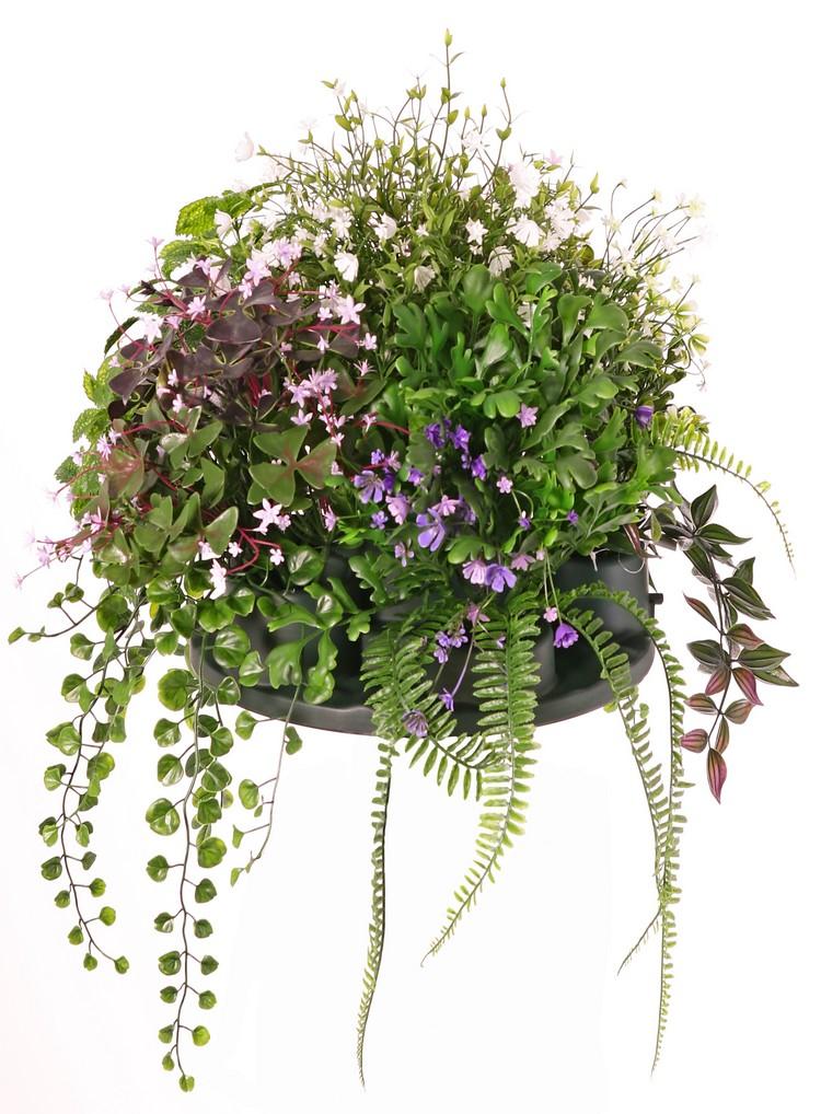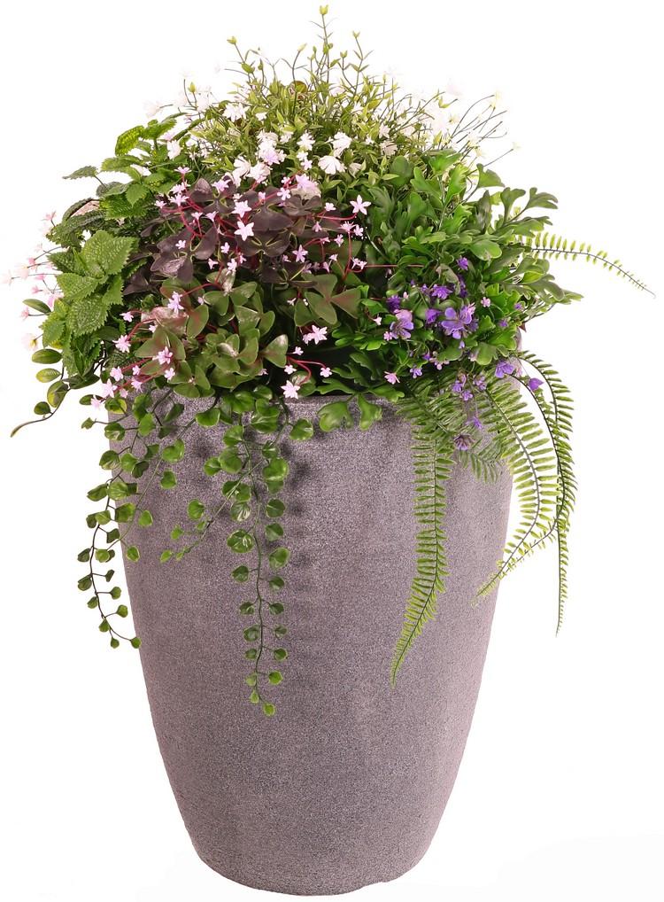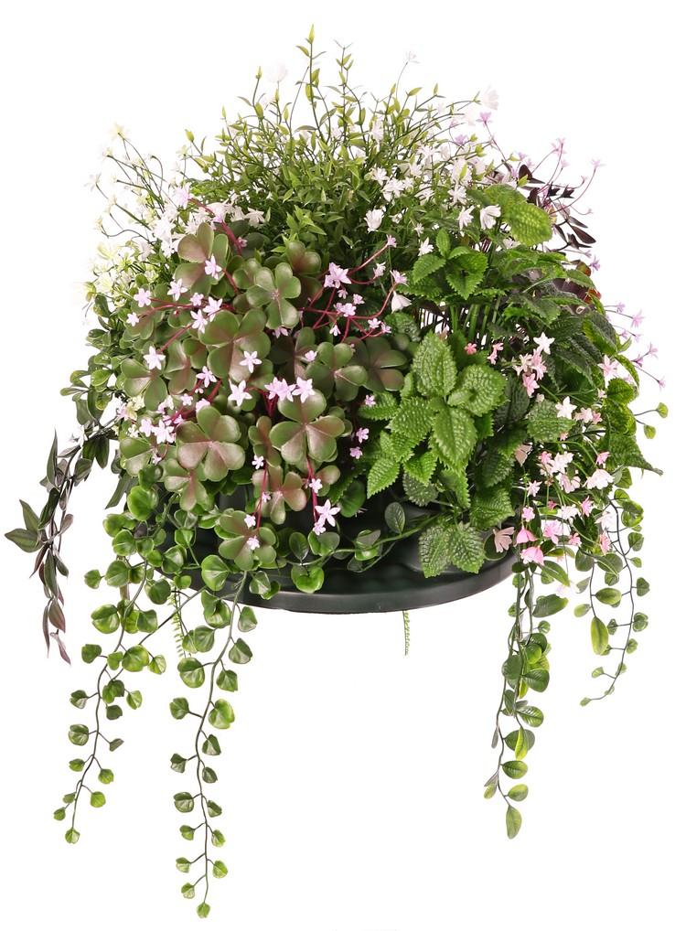 Arreglo floral artificial Impatiens DANFIR, menta, helecho, trébol, blanco-verde, 50 cm, Ø 32 cm