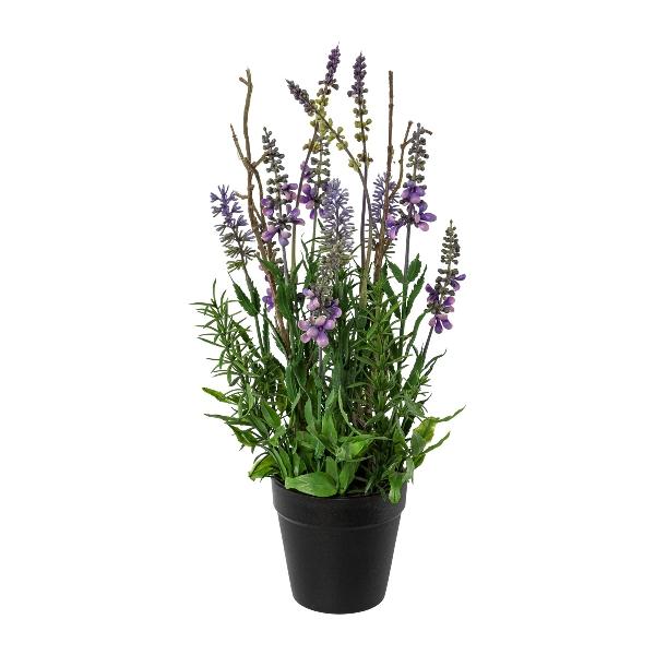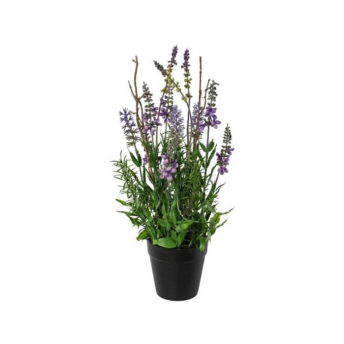 Arreglo floral artificial lavanda ZELAV con salvia, maceta decorativa, morada, 35 cm