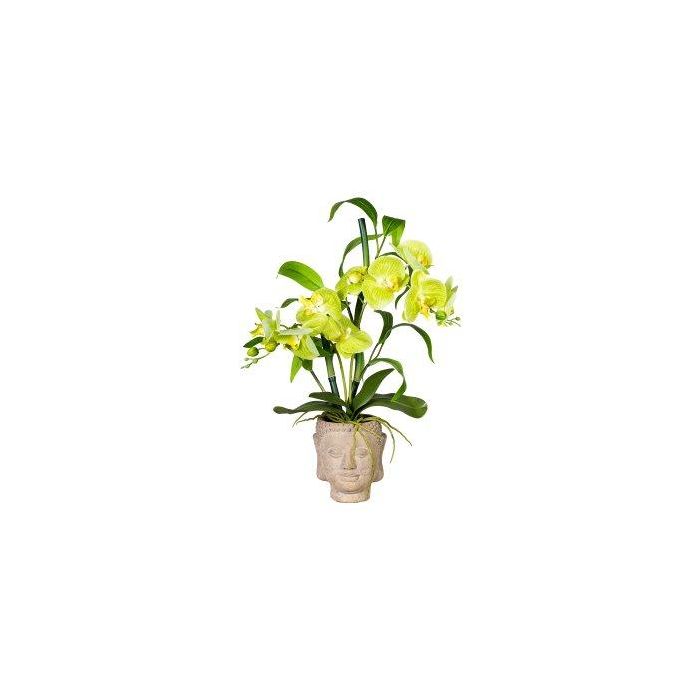 Arreglo floral artificial orquídea bambú MARAKI en maceta de cemento Buda, raíces, verde claro, 60 cm