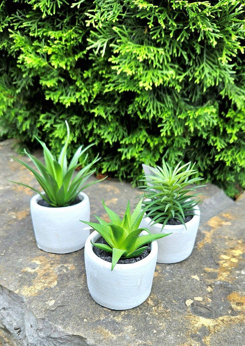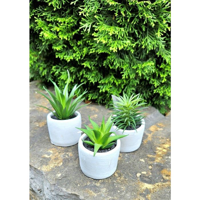 Arreglo floral de suculentas artificiales FINNICK en maceta de hormigón, 3 unidades, verde, 15 cm