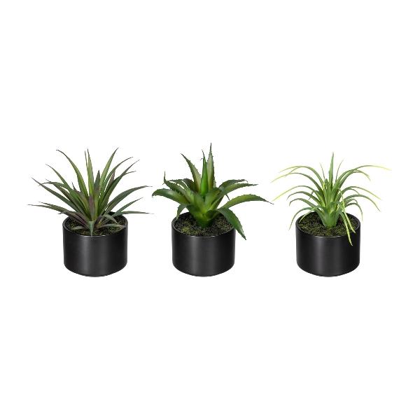 Arreglo floral decorativo de suculentas FLUKE en maceta de cerámica, 3 unidades, verde, 15 cm