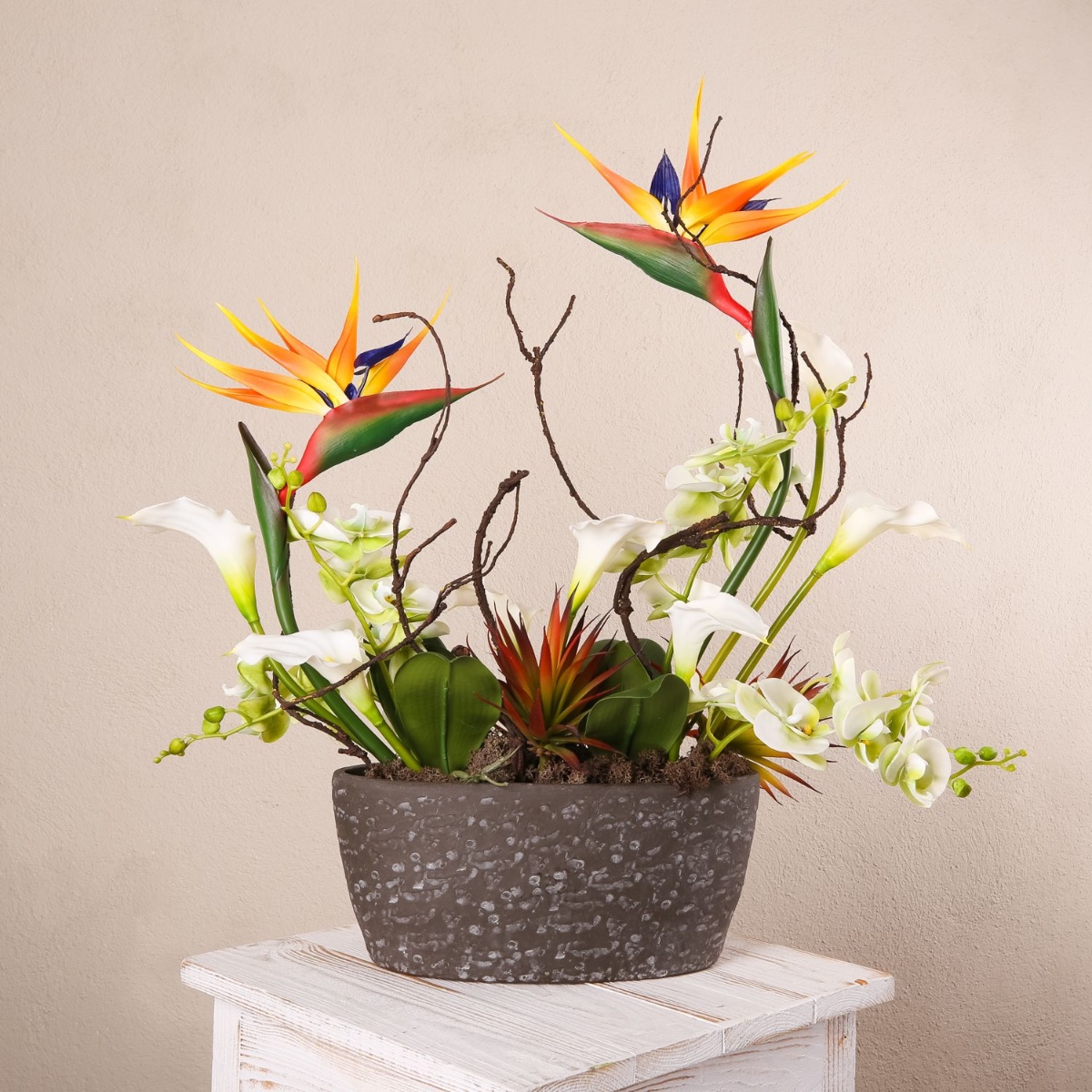 Arreglo floral artificial LOVARA: exotismo que encanta