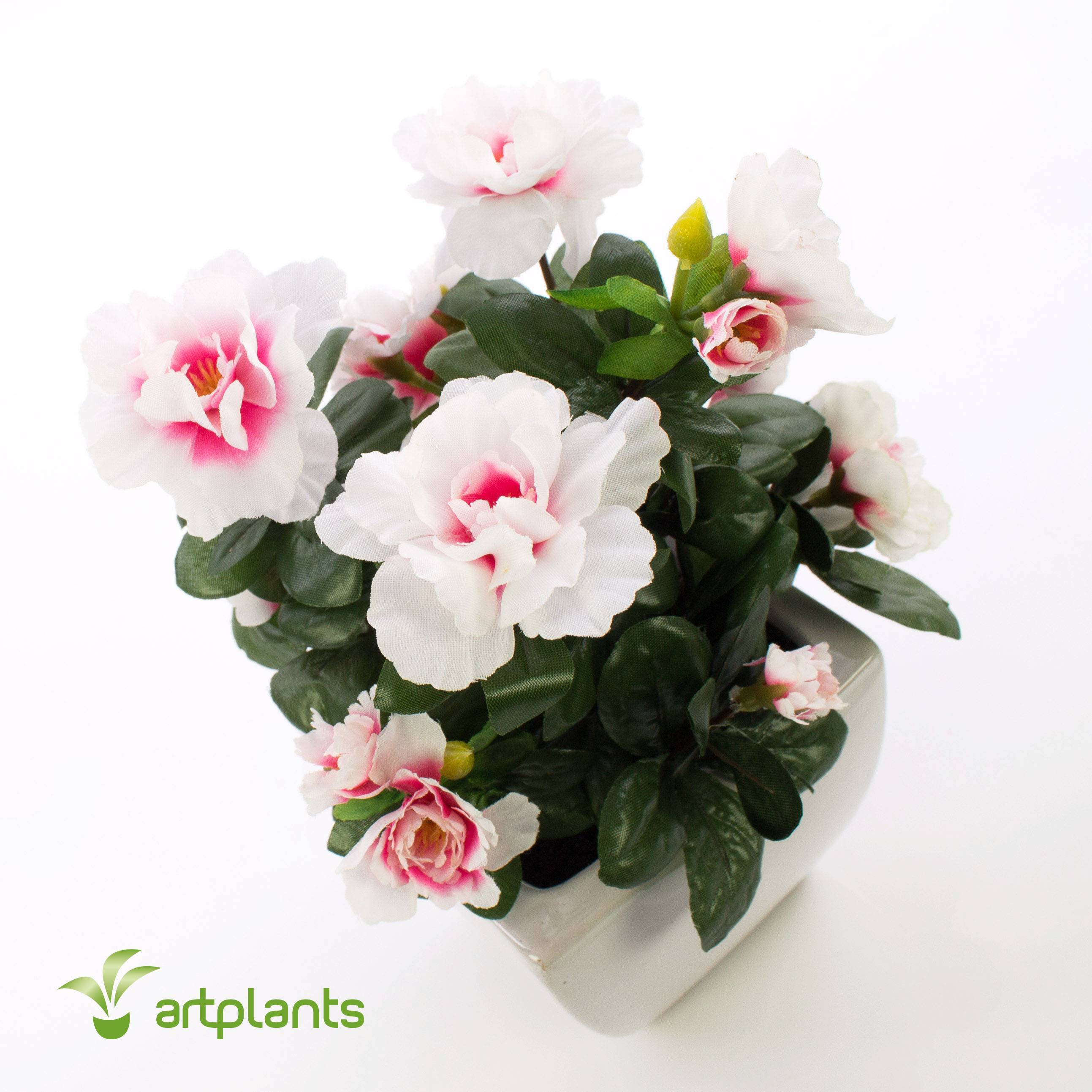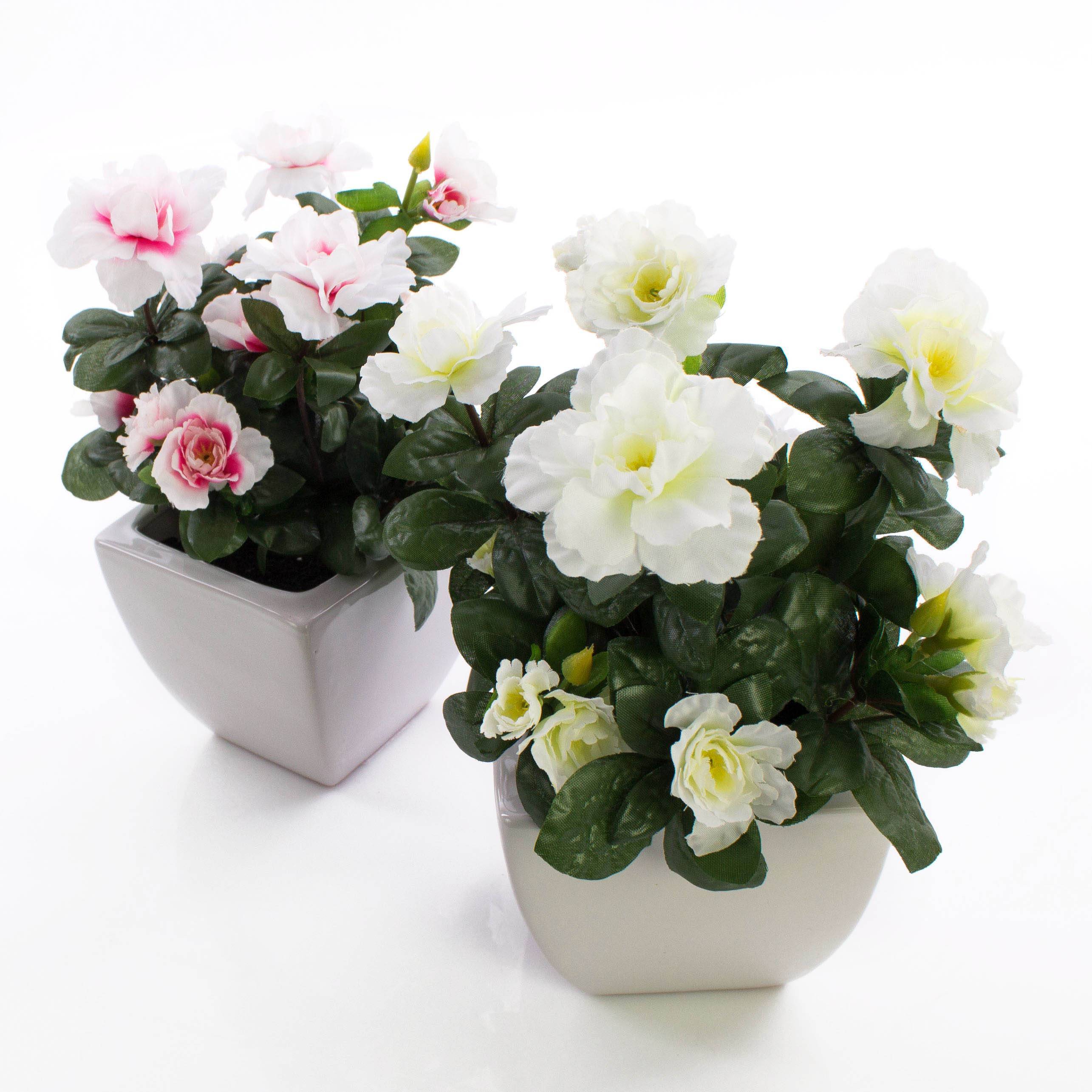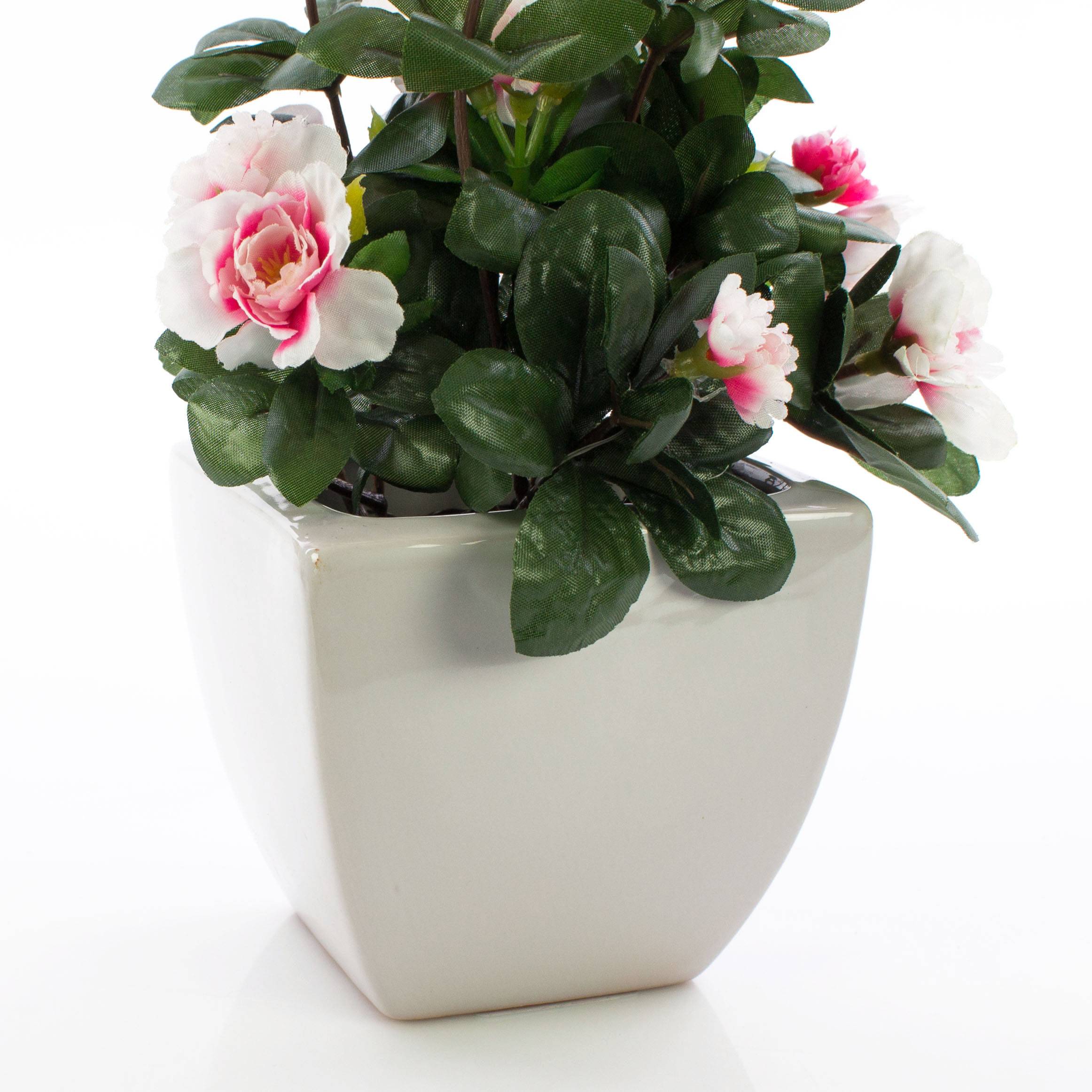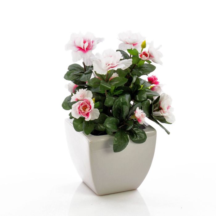Azalea artificial (Rhododendron) TABITA en maceta cuadrada de cerámica