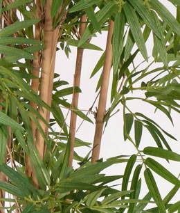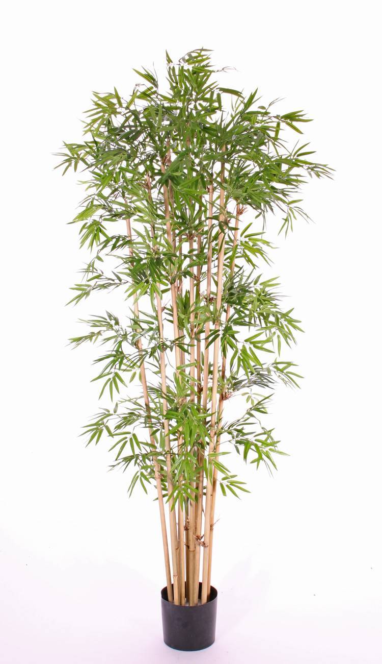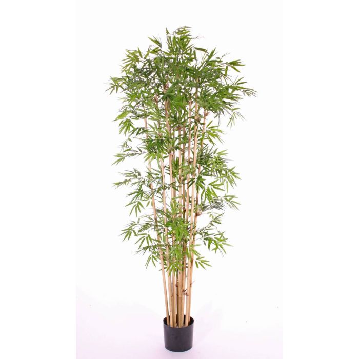 Bambú con varios troncos, 2410 hojas y una altura total de aproximadamente 180 cm. El bambú artificial es apto para exteriores.