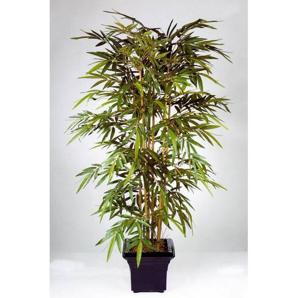 Bambú decorativo con varios troncos y cerca de 1535 hojas. La mata artificial con la maceta mide un total aproximado de 210 cm de alto.