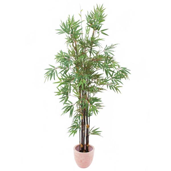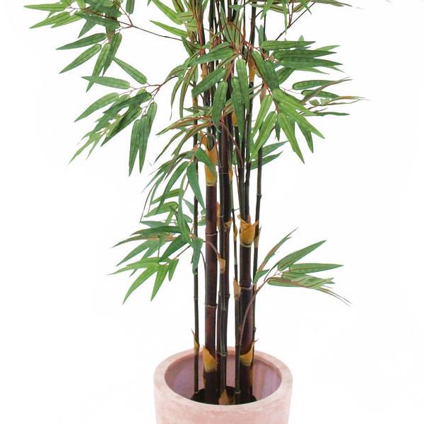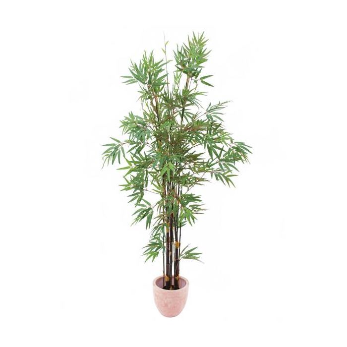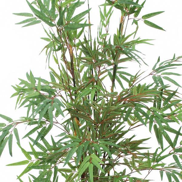 Bambú con troncos artificiales oscuros y cerca de 1735 hojas. El bambú artificial se suministra en maceta y mide un total aproximado de 210 cm de alto.