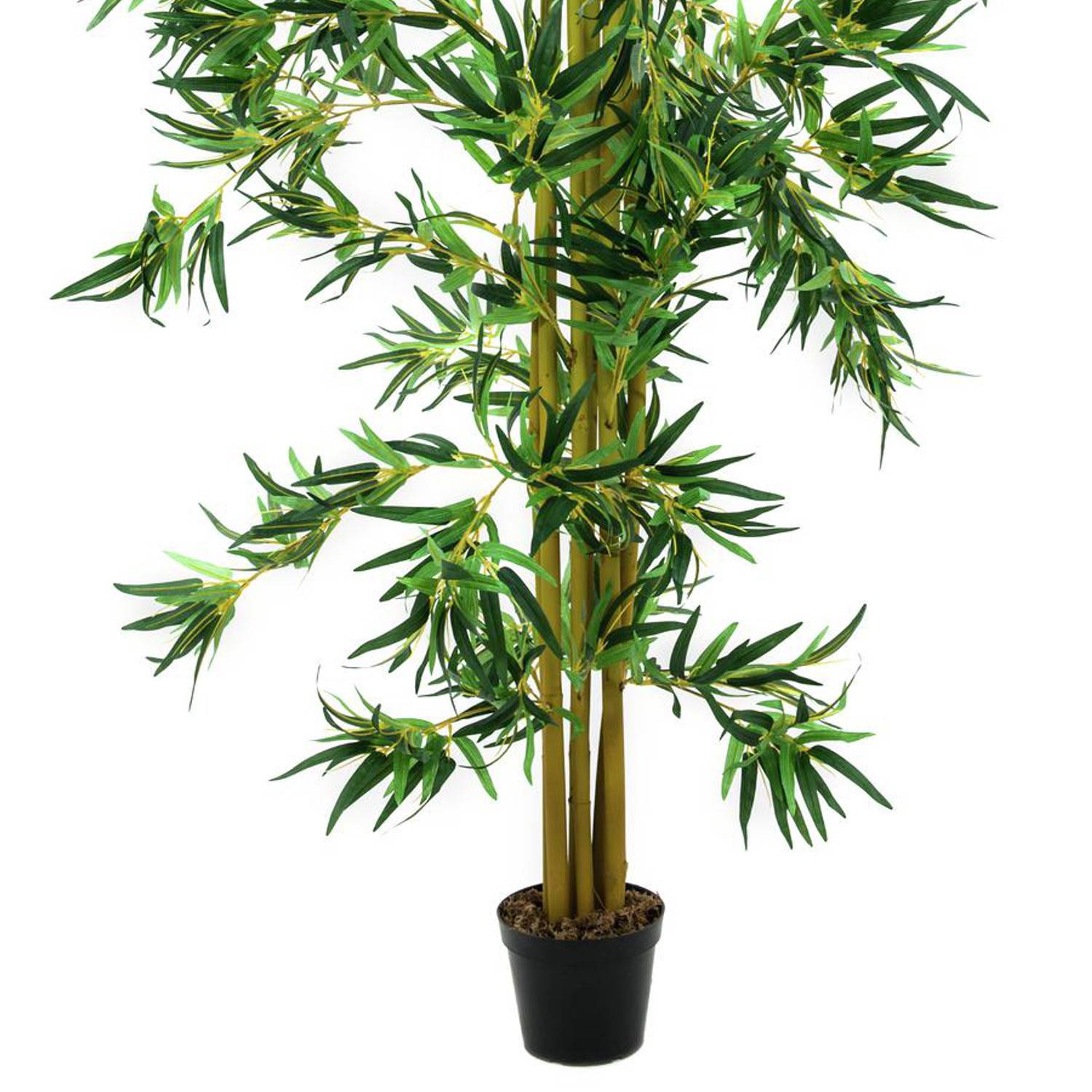 Imponente bambú decorativo con varias cañas naturales. La mata artificial mide un total aproximado de 150 cm de alto y se entrega en maceta.