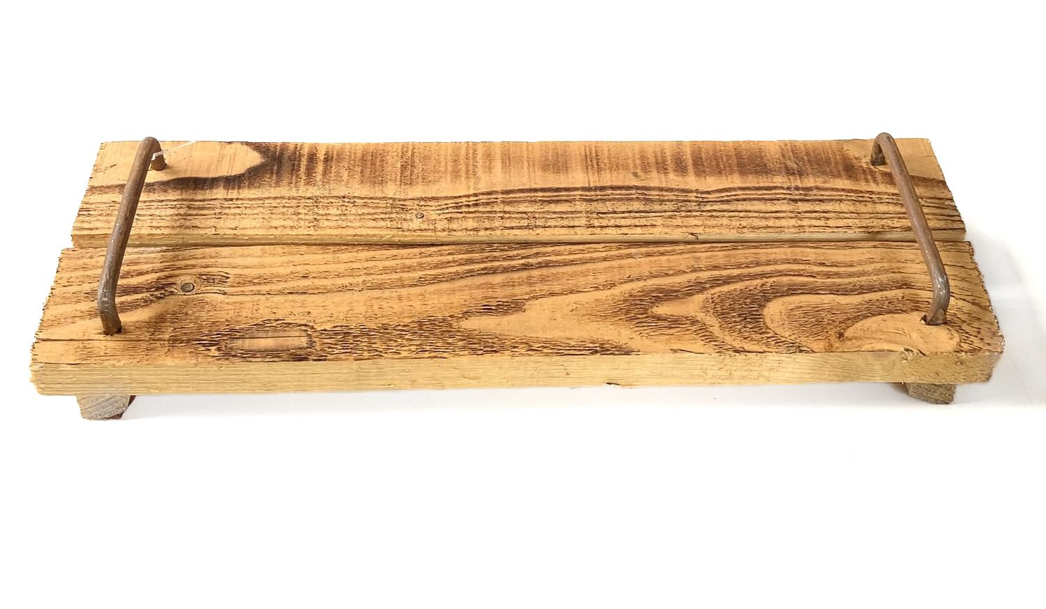 Bandeja de madera vintage FENRIK con asa, flameado natural, 50x14x4cm