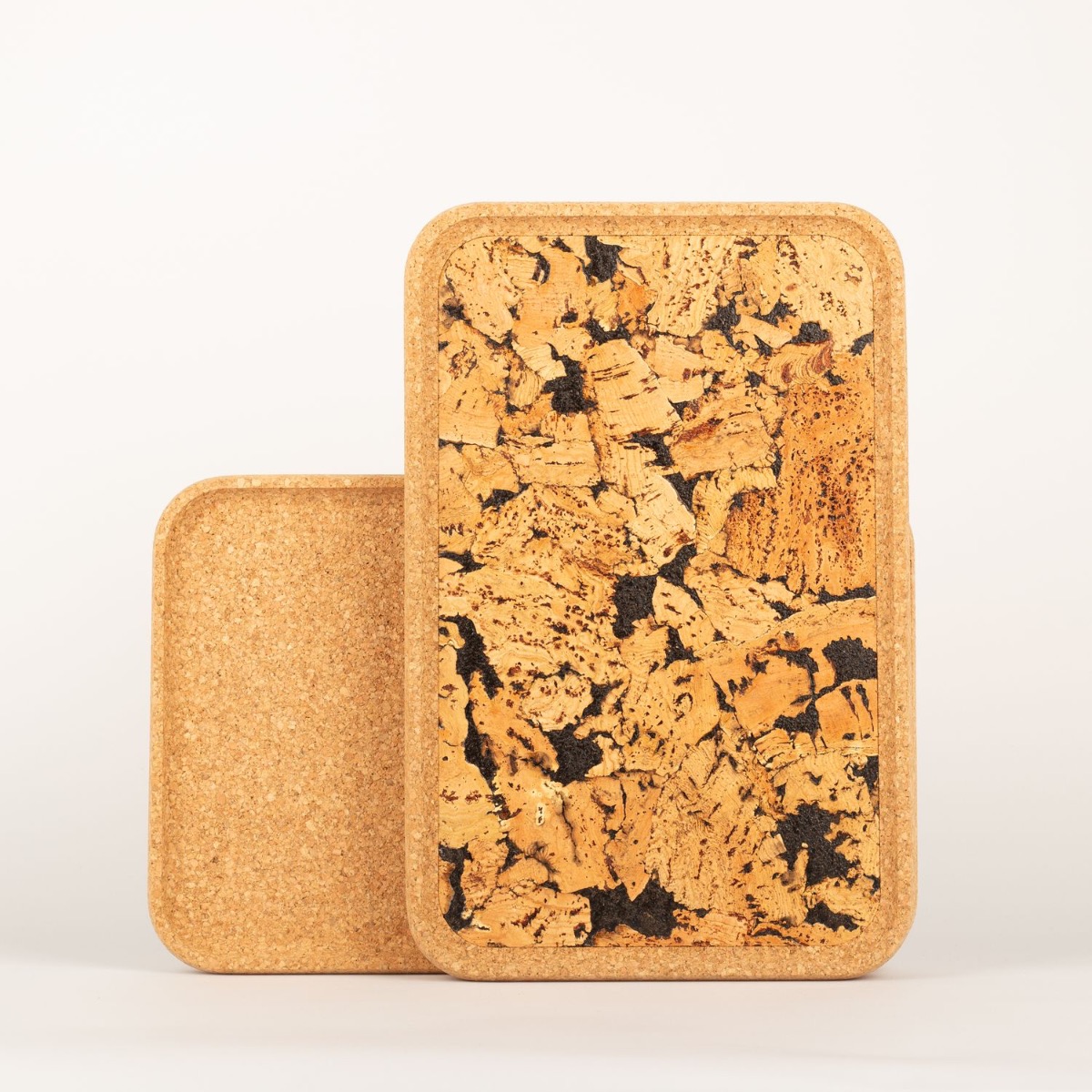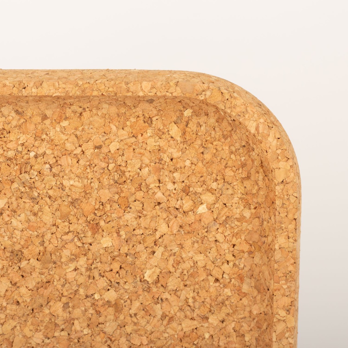 - En color natural, elaborado a partir de corcho prensado. Para formar el corcho prensado se añade un aglutinante a los gránulos de corcho clasificados. El aglutinante, un adhesivo de calidad alimentaria, actúa como un agente natural, asegurando que las partículas de corcho se adhieran entre sí manteniendo sus propiedades únicas.