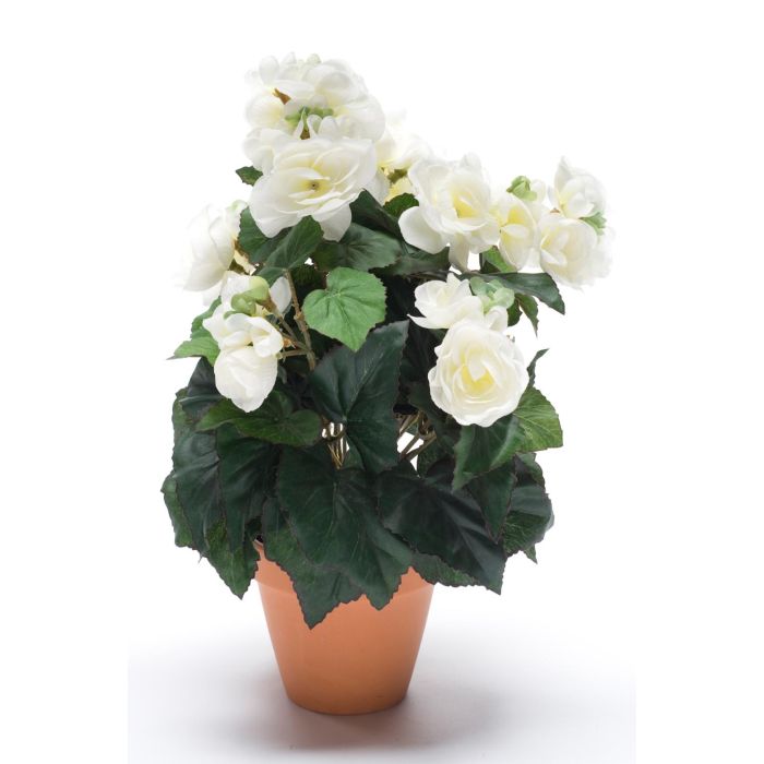 La begonia artificial CATINKA en color blanco y en maceta, tiene una altura de aproximadamente 30 cm.