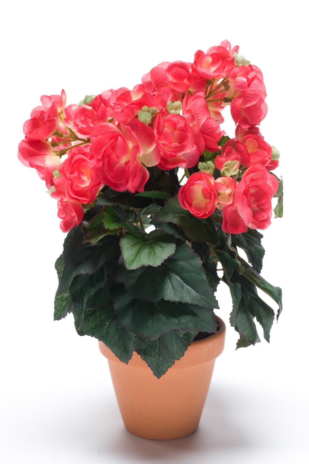 La begonia artificial CATINKA en color rosa y en maceta, tiene una altura de aproximadamente 30 cm.