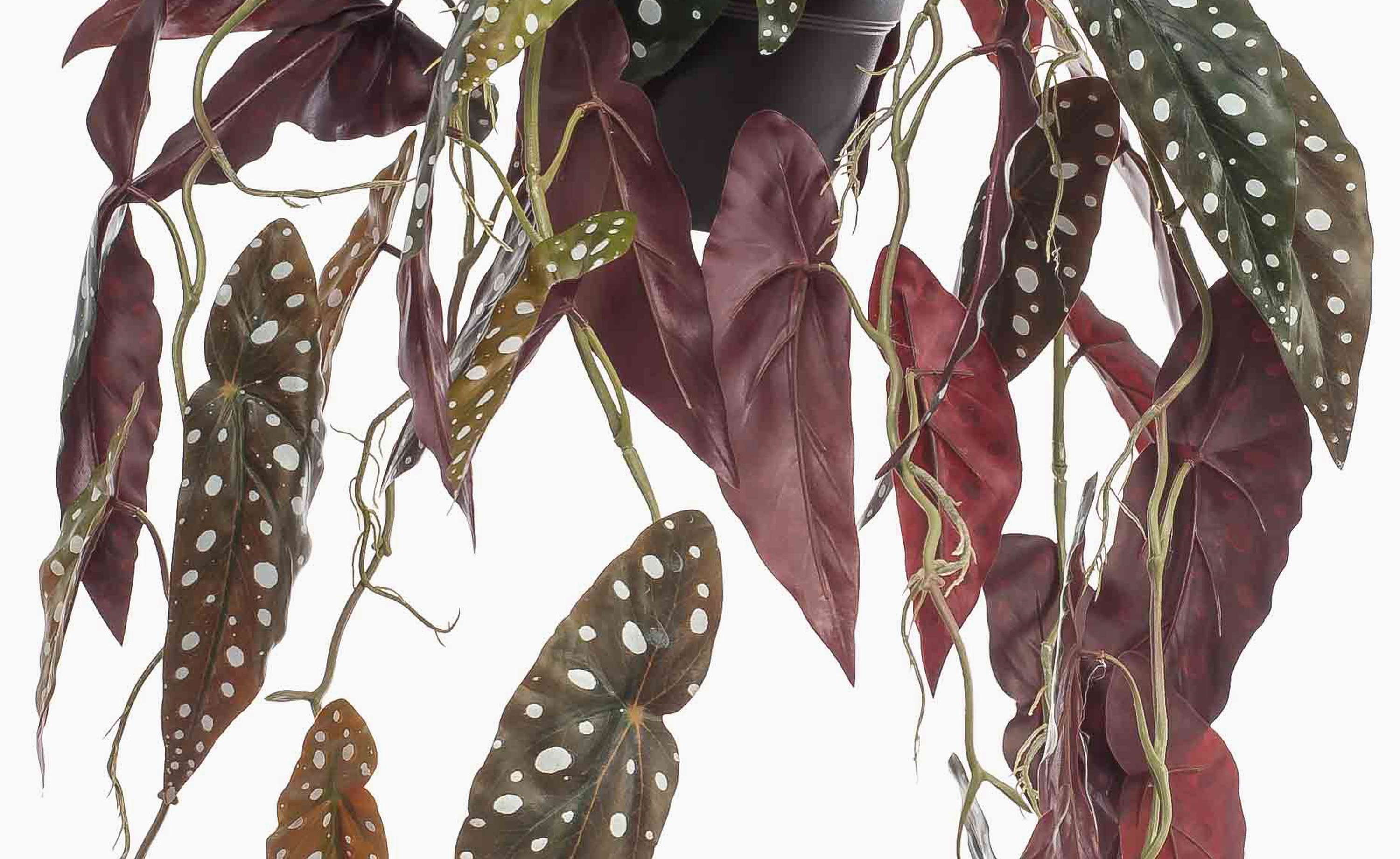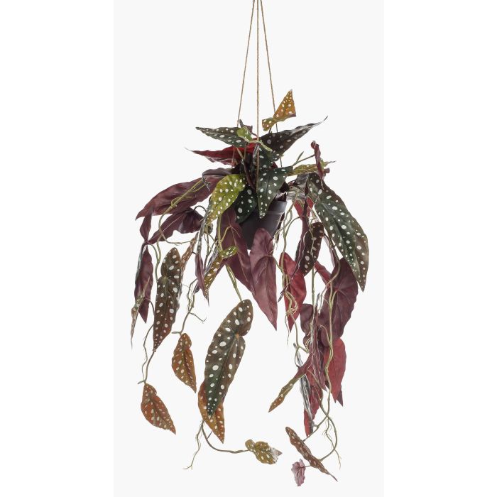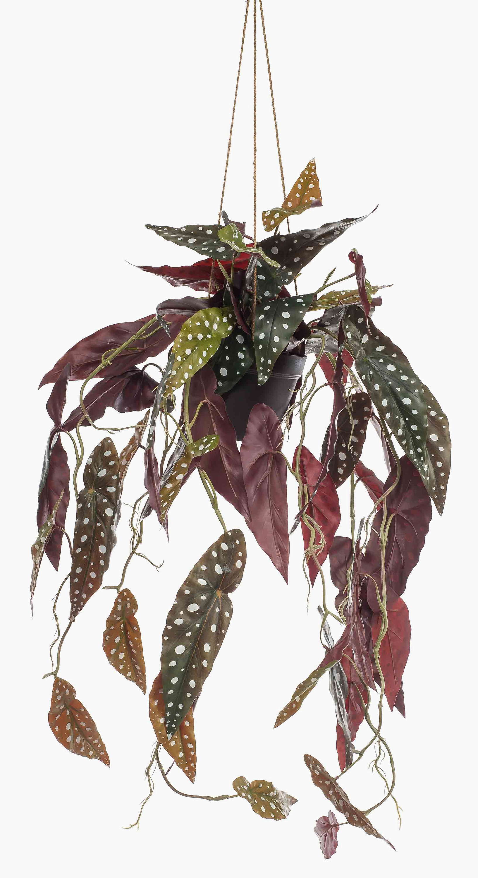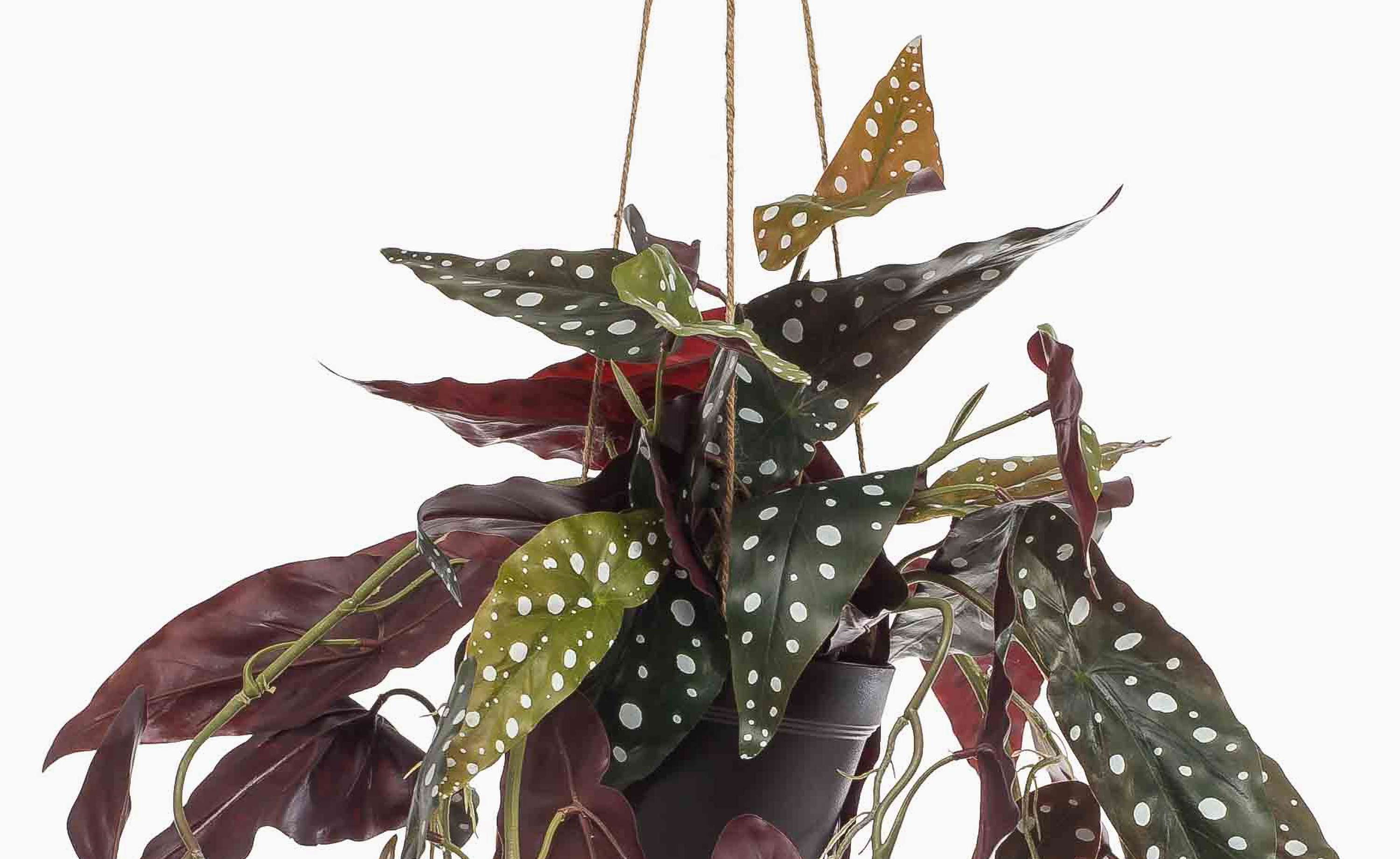 Begonia artificial en maceta colgante VIALO, maceta decorativa, verde y blanco, 80 cm
