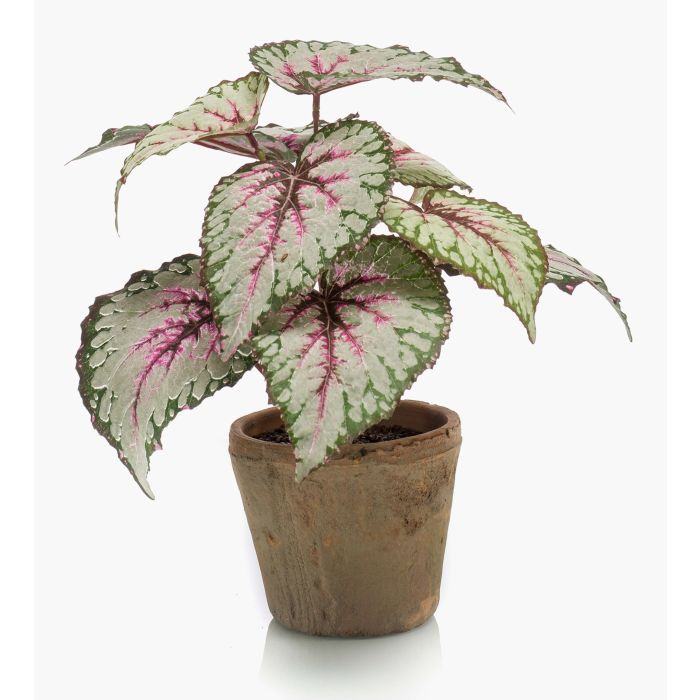 Begonia rex artificial MEIRA en maceta de terracota, verde-rosa, 25cm