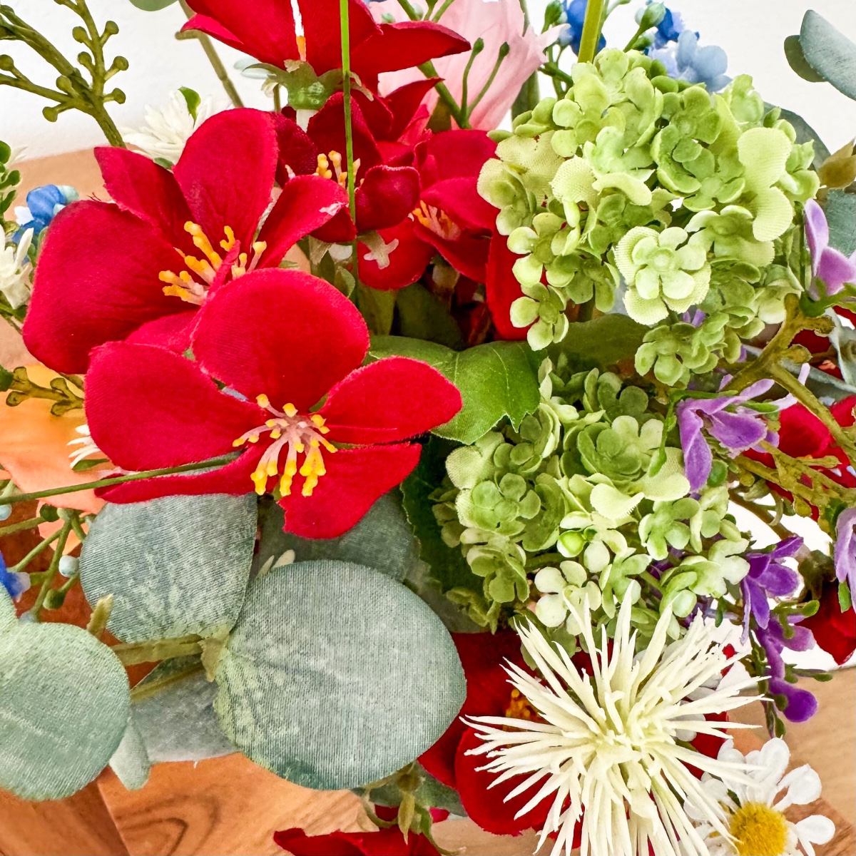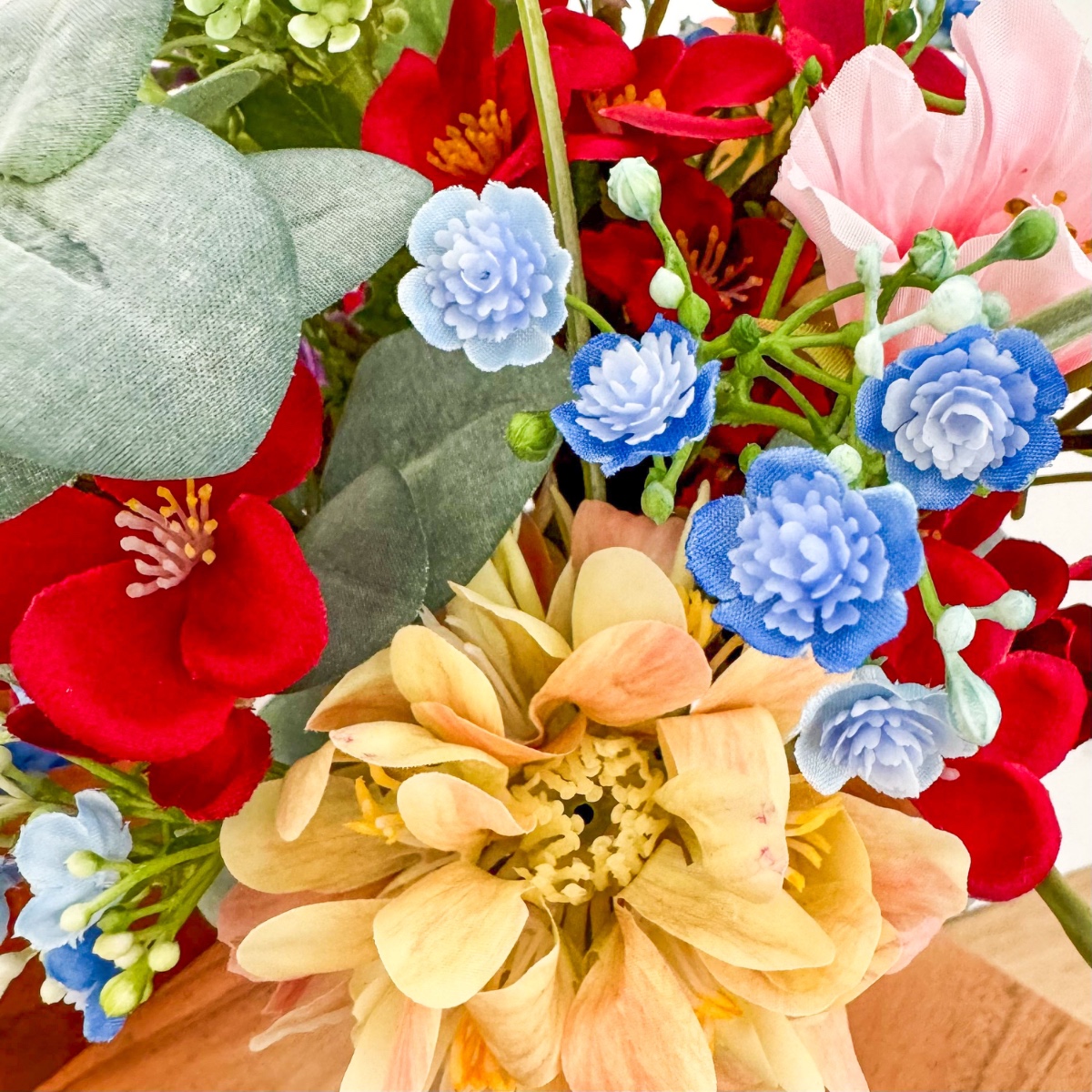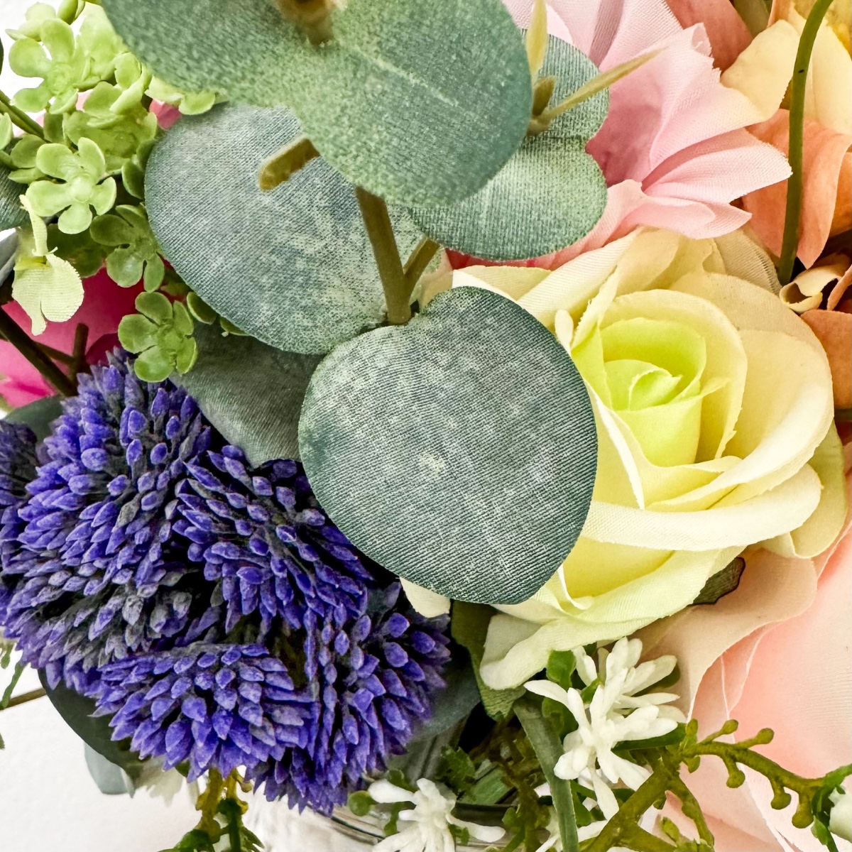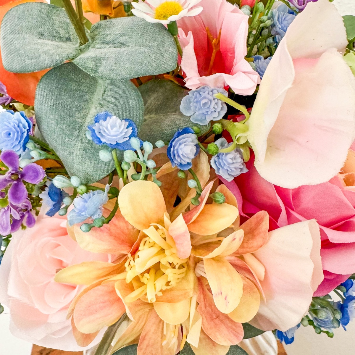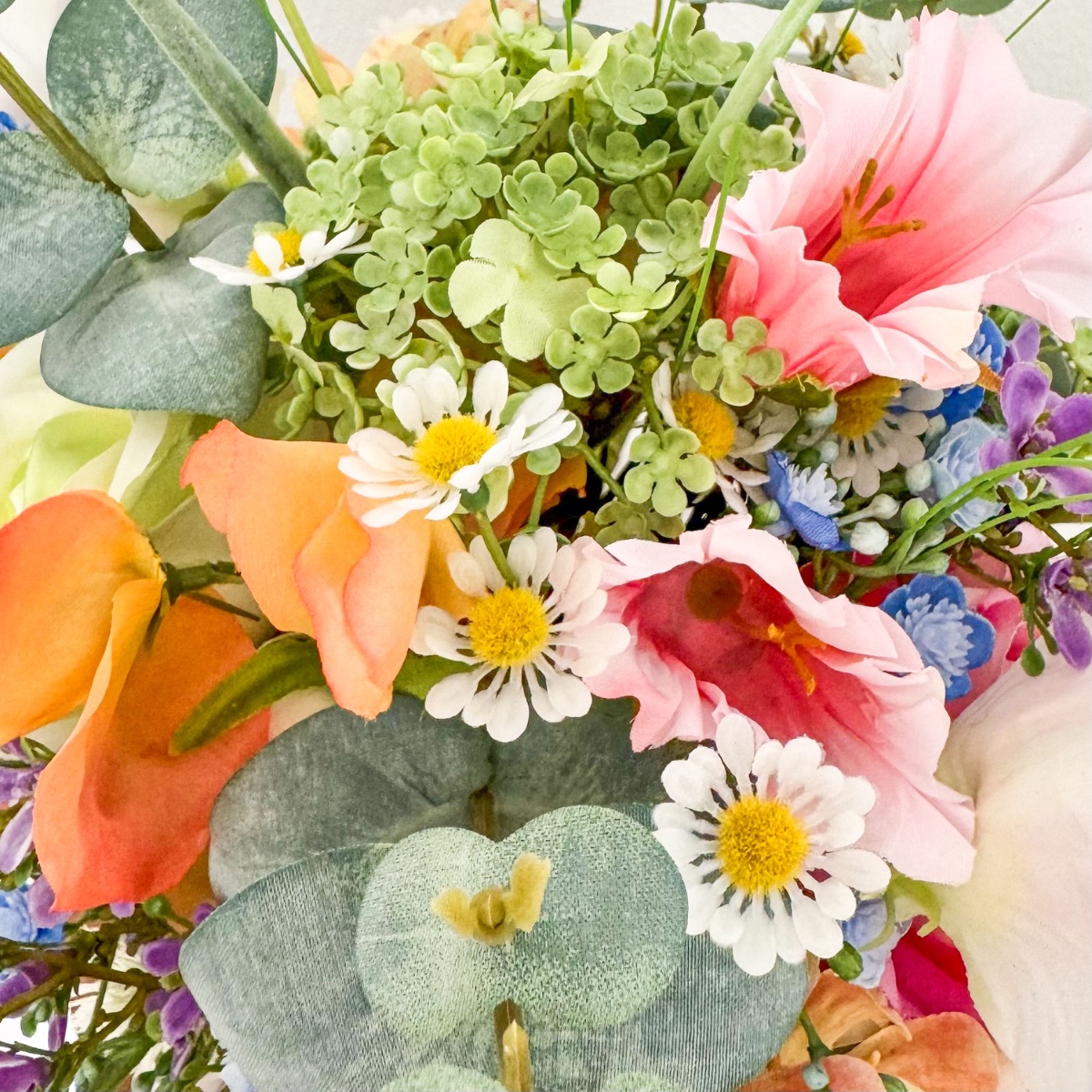 ¡El romanticismo de los prados en su forma más refinada! Inspirado en los deseos personales de la novia y en una imagen de referencia elegida con mucho cariño, se creó este ramo de novia tan especial, diseñado a medida para hacer realidad un auténtico sueño. El deseo: un ramo que capturara la naturalidad de un arreglo floral de prado y que, al mismo tiempo, tuviera un aire elegante y sofisticado. La combinación de numerosas flores, como la escabiosa, las campanillas, el lathyrus, la manzanilla y la centáurea de pradera, da lugar al carácter suelto y ligero de un ramo de flores de pradera. Las rosas y la delicada gypsophila aportan al arreglo una profundidad noble y garantizan un equilibrio elegante entre naturalidad y elegancia. El ramo está atado de forma compacta, lo que le confiere un aspecto especialmente armonioso y de gran calidad. Algunas ramas sueltas —sobre todo hierbas y eucalipto— sobresalen con naturalidad y rompen la forma de manera espontánea. Así se crea una silueta viva con un movimiento suave, que hace que el ramo resulte moderno y romántico a la vez. La paleta de colores, en delicados tonos melocotón, rosa y verde, refleja la romántica ligereza del concepto y subraya el aspecto natural: perfecto para una boda con un toque personal, incluso lejos de casa. El ramo de lanzamiento a juego retoma el diseño y se complementa con pequeñas flores rojas que aportan un toque cariñoso y juguetón. Dos broches a juego completan el conjunto con estilo. Un ramo de novia que demuestra cómo una idea y tus expectativas dan lugar a un diseño floral único: personal, emotivo y con mucho amor por los detalles. ¡Compra el look!