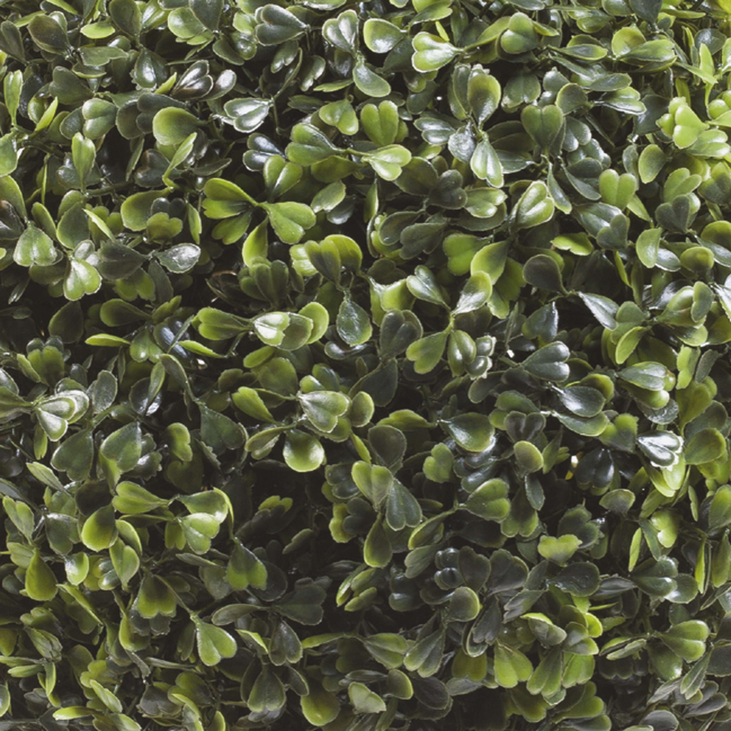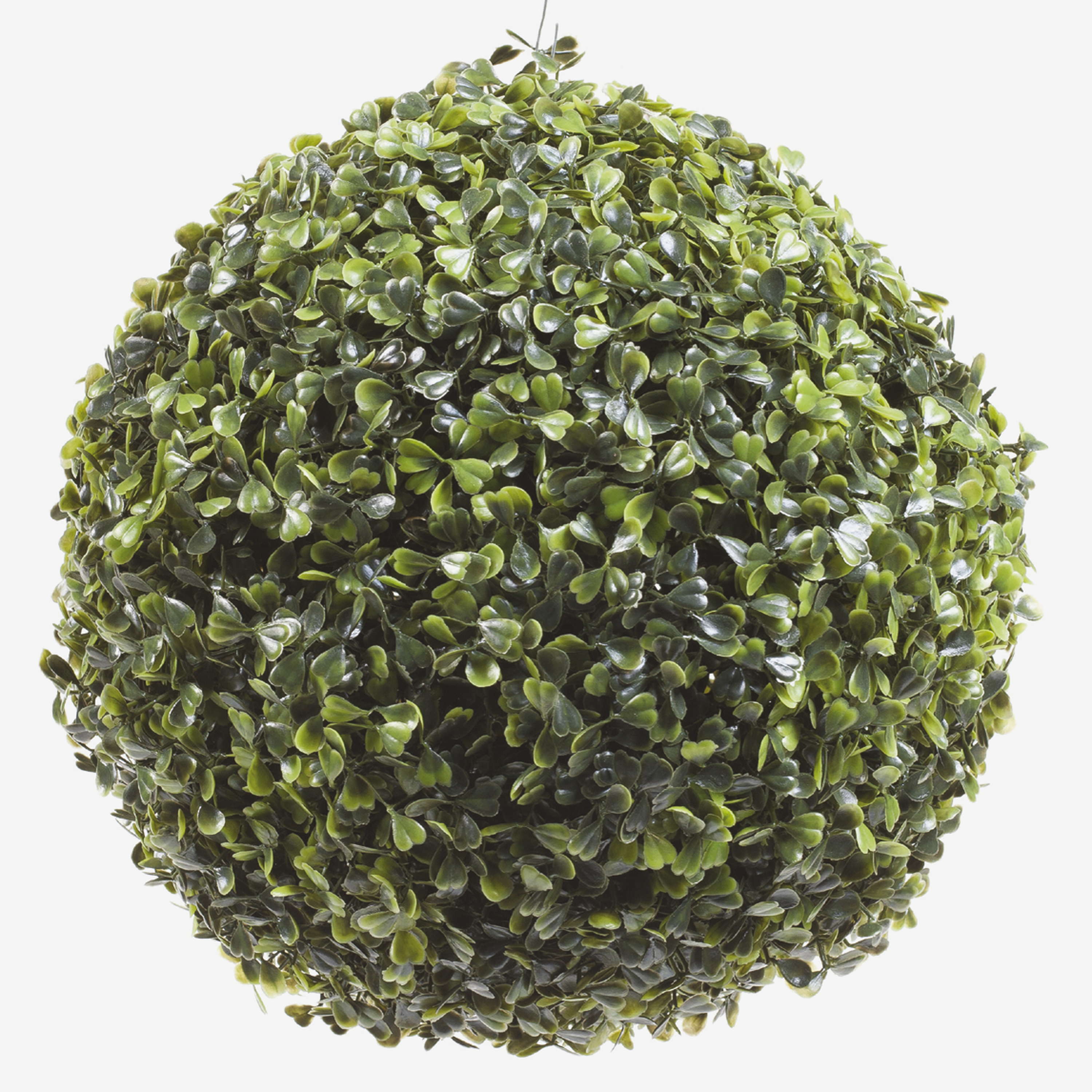 Bola de boj artificial HEINZ con hojas en forma de corazón de color verde claro y oscuro. La bola de boj posee un diámetro aproximado de 25 cm.