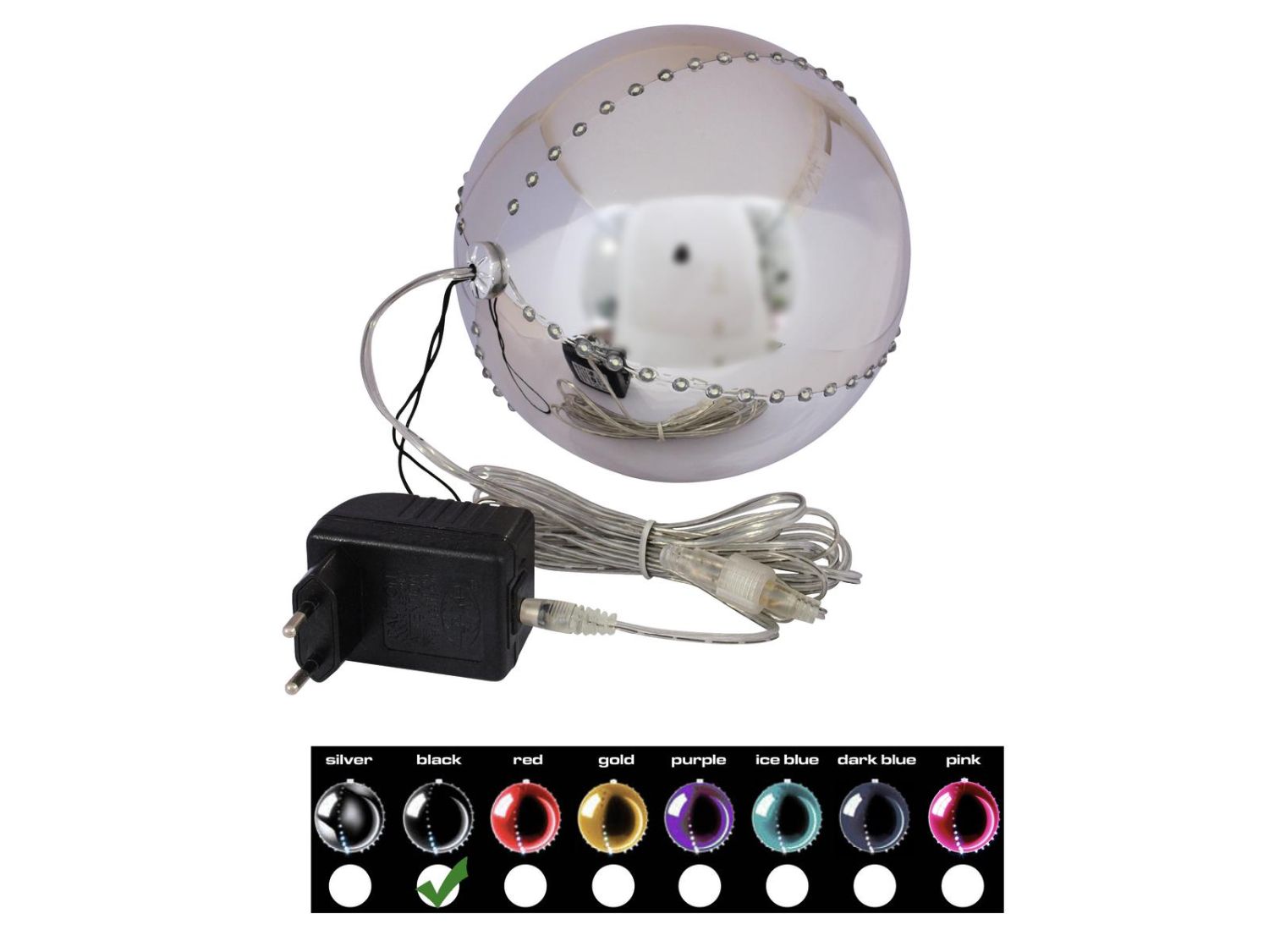 Bola de árbol de Navidad LUVELIA con LED, negro brillante, Ø15cm