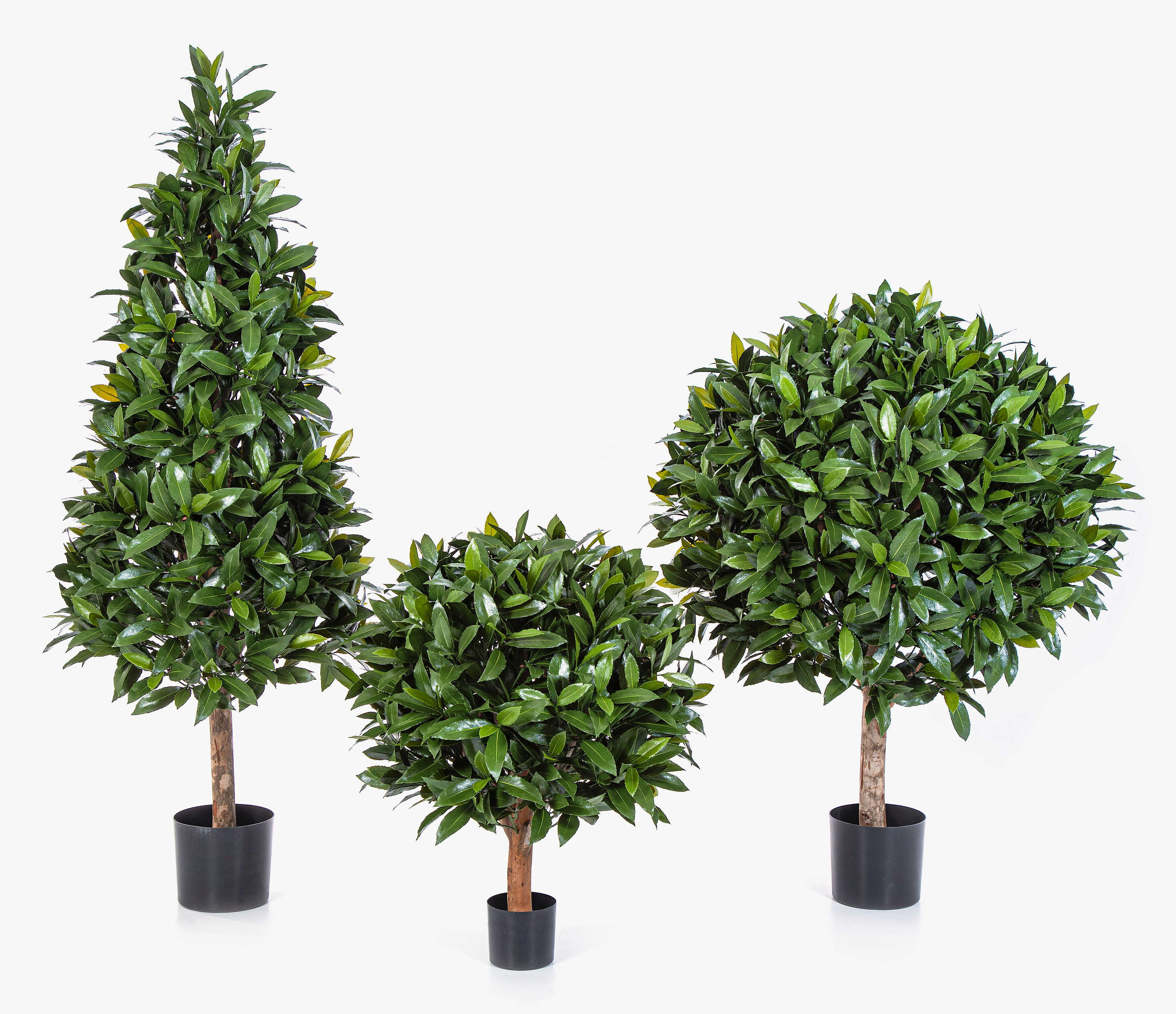 Laurel falso LARAWAG de color verde. La planta de laurel con un bonito topiario queda especialmente bien en una jardinera grande.