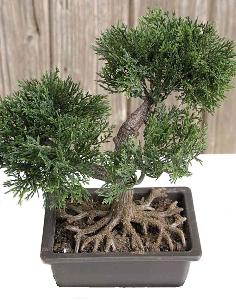 Bonsái falso de cedro ALVARI con maceta. El hermoso bonsái de plástico tiene una altura de aproximadamente 20 cm.