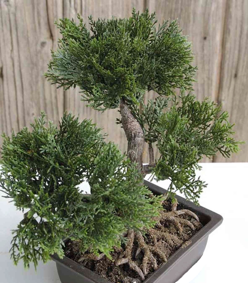 Bonsái artificial de cedro ALVARI en tiesto decorativo, 20 cm