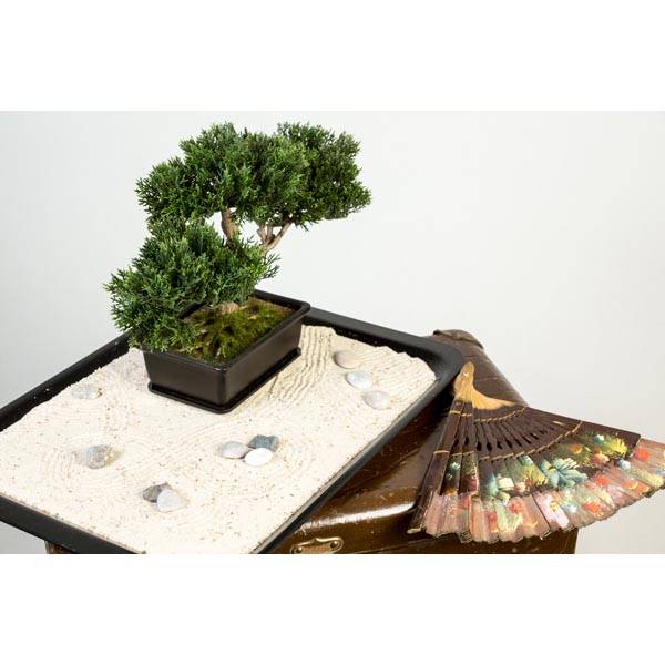 - Altura total (incl. maceta) cercana a 25 cm; anchura total del bonsai de unos 30 cm