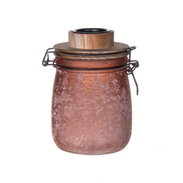Bote con cierre hermético ANNEDORE con soporte para velas de té, aspecto escarchado, ámbar, 15,5cm, Ø10,5cm