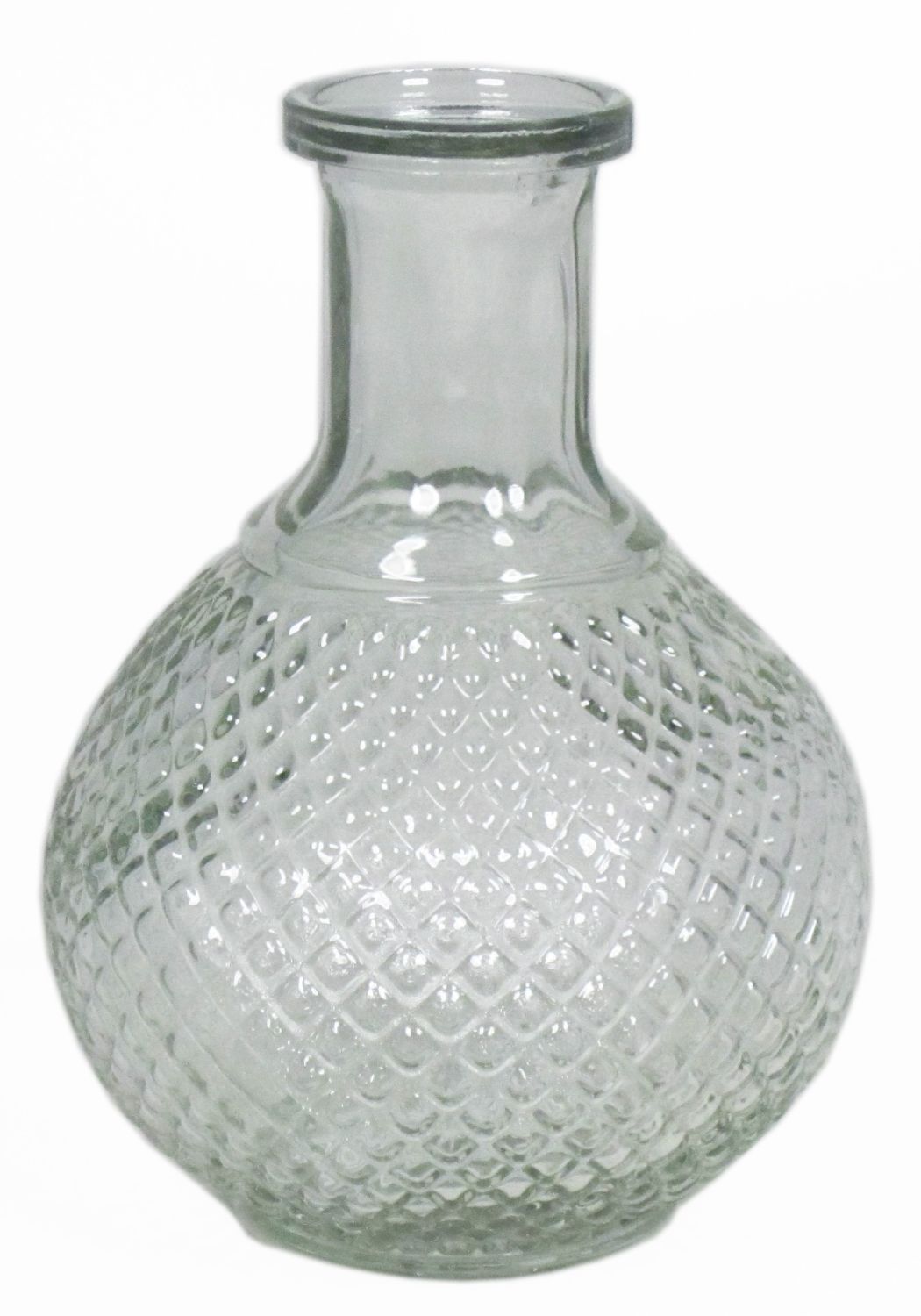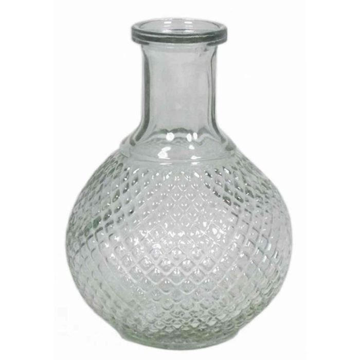 Botella de vidrio transparente DONKA con diseño de rombos, 15cm, Ø11cm