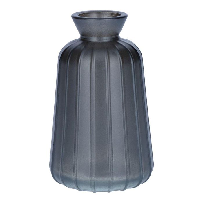Botella decorativa de cristal TATIANA con estrías, gris metalizado, 11 cm, Ø 6,5 cm