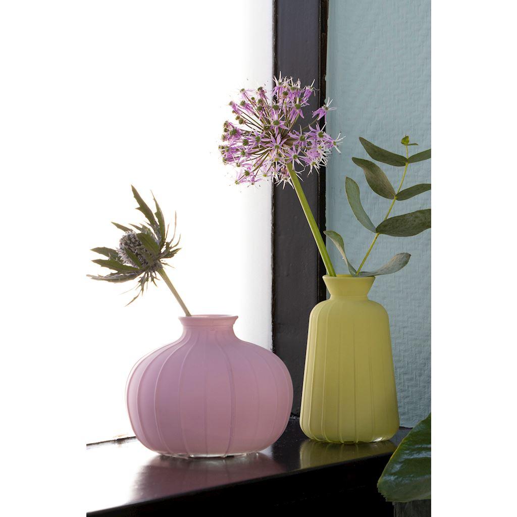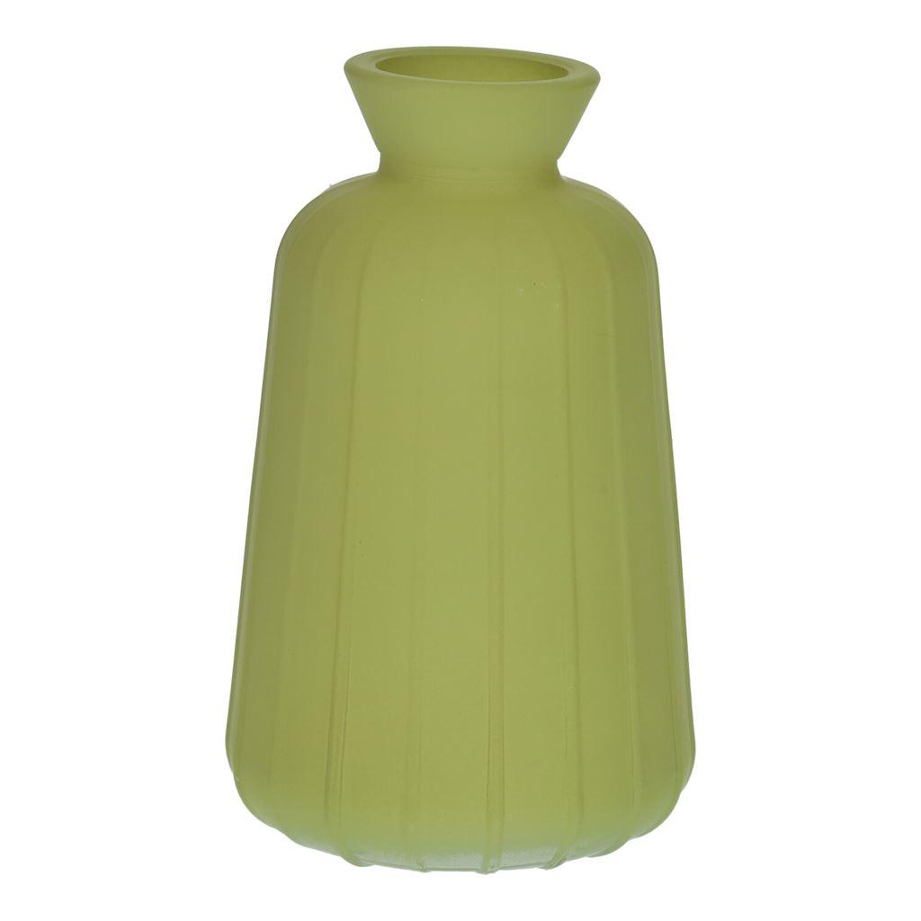 Botella decorativa de cristal TATIANA con estrías, verde oliva mate, 11 cm, Ø 6,5 cm