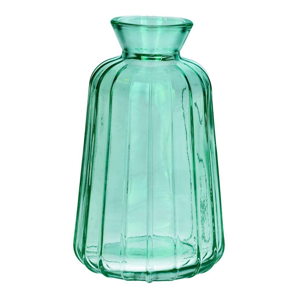 Botella decorativa de vidrio TATIANA con estrías, turquesa transparente, 11 cm, Ø 6,5 cm