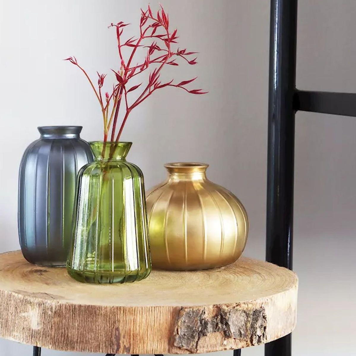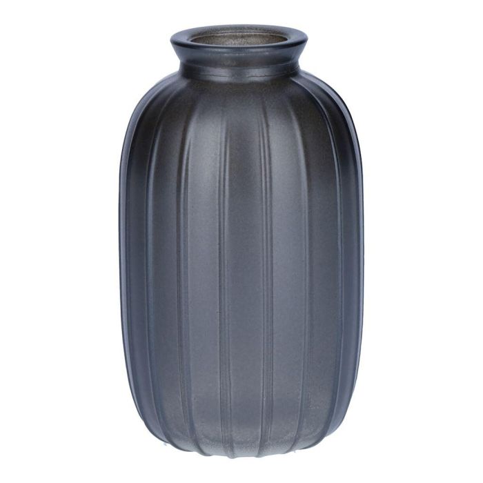 Botella SILVINA de vidrio, estriada, gris metalizado, 12 cm, Ø 7 cm