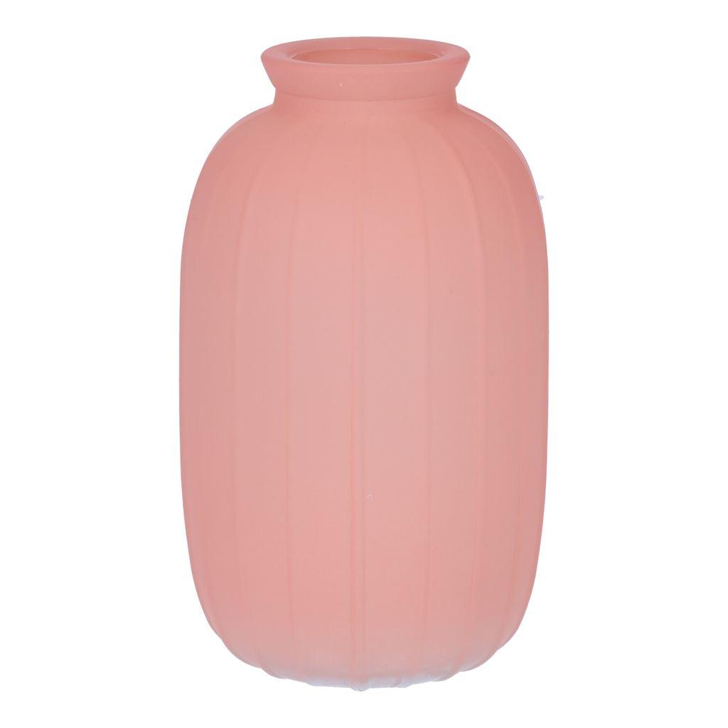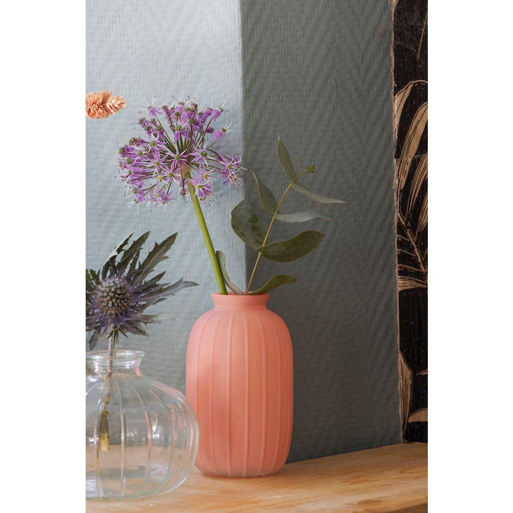 Botella SILVINA de vidrio, estriada, rosa antiguo transparente, 12 cm, Ø 7 cm