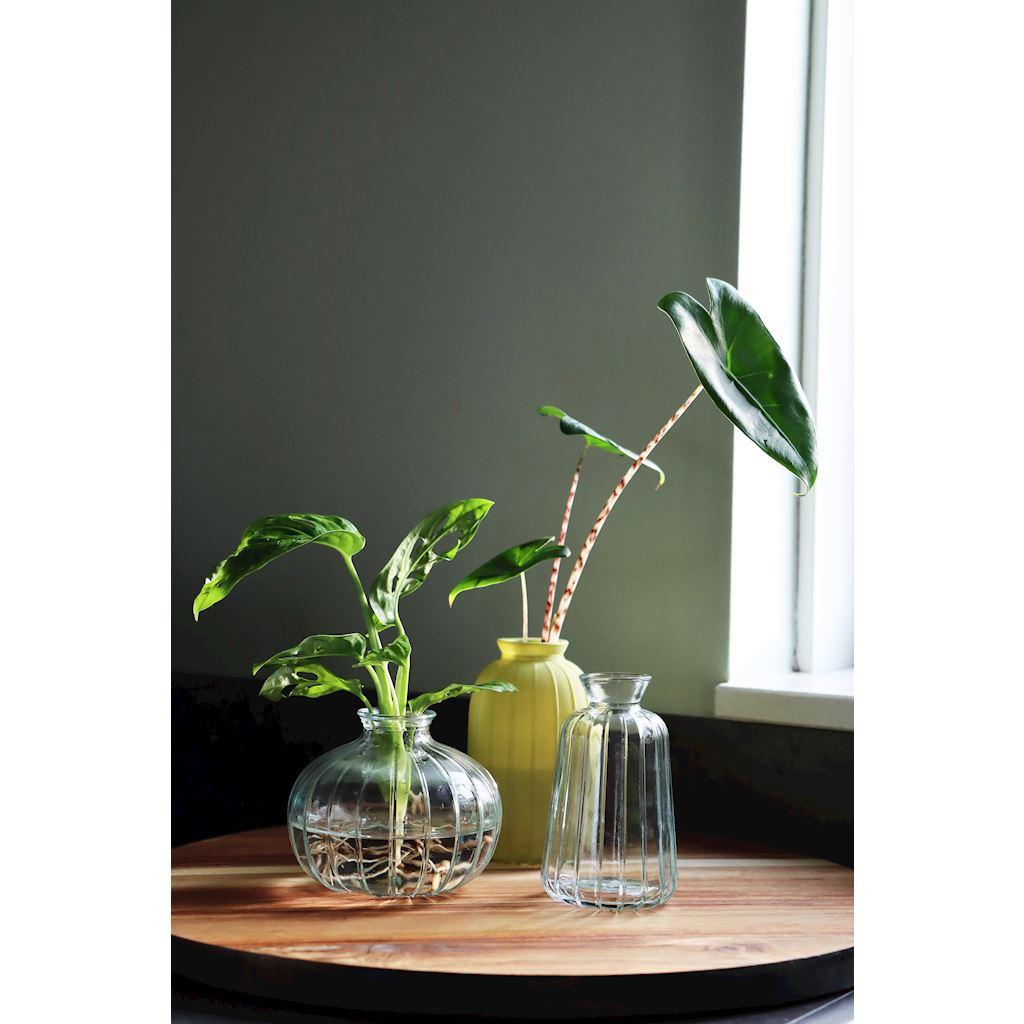 Botella SILVINA de vidrio, estriada, verde oliva mate, 12 cm, Ø 7 cm