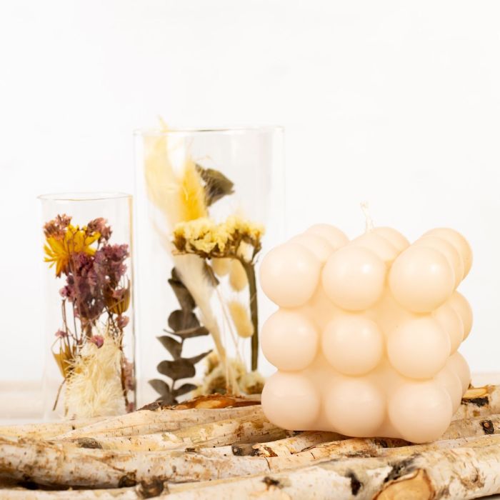 Esta tendencia es sencillamente siempre actual. Las ramas de abedul sirven como posavasos para nuestra elegante vela burbuja, que queda simplemente preciosa junto con nuestras flores secas en un tarro. ¡Un look estupendo para el verano! Compra el look!Consejo de diseño: Hemos quitado las tapas de los tarros de flores secas para que puedas ver mejor las flores del interior. La vela burbuja debe estar recta sobre las ramas de abedul para que también pueda arder uniformemente.