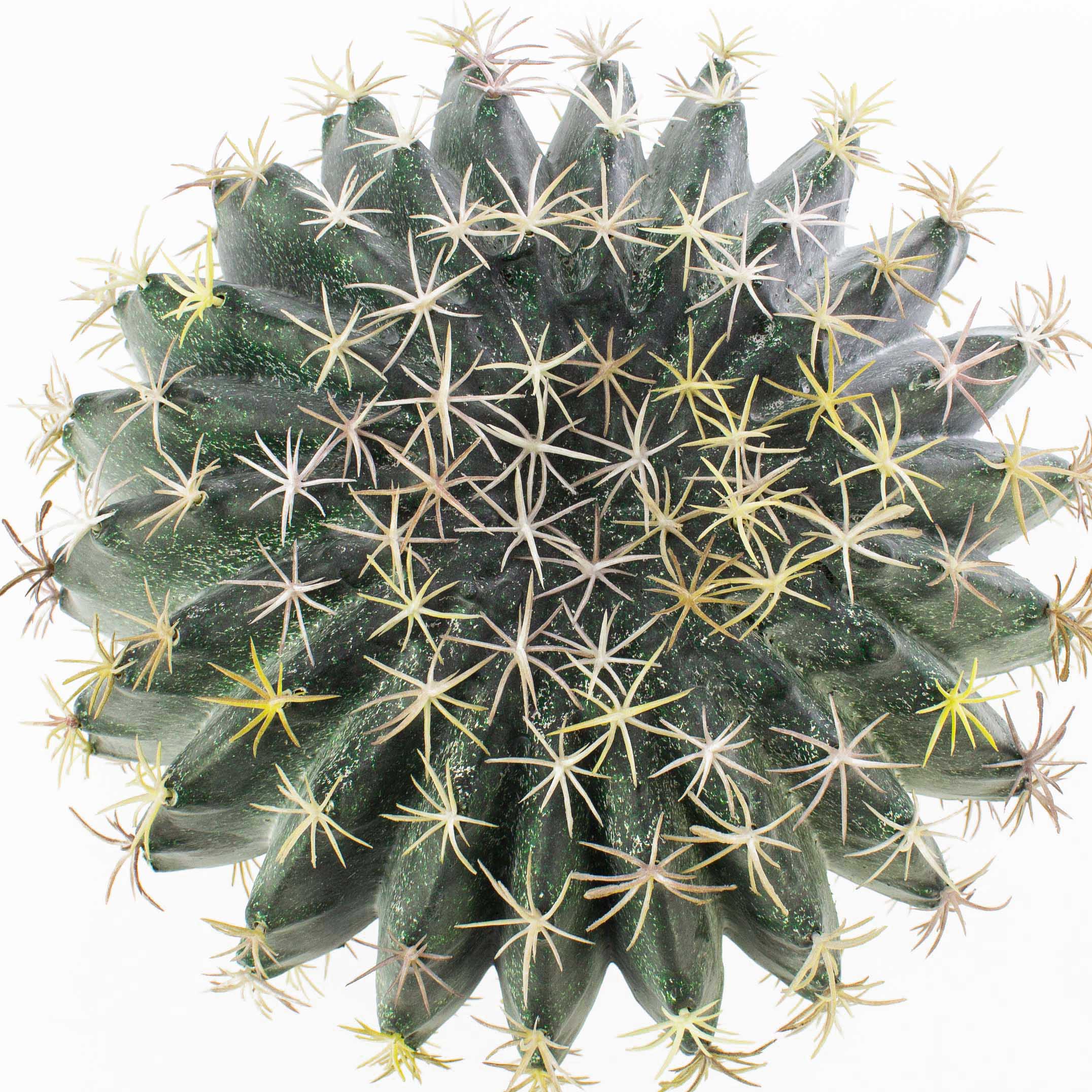 Bonito cactus de asiento de suegra ELVIO con numerosas púas en distintos tonos. Las púas poseen un aspecto muy natural además de no suponer ningún riesgo ya que se encuentran elaboradas con plástico de alta calidad. El cactus artificial posee un diámetro total de aprox. 25 cm.