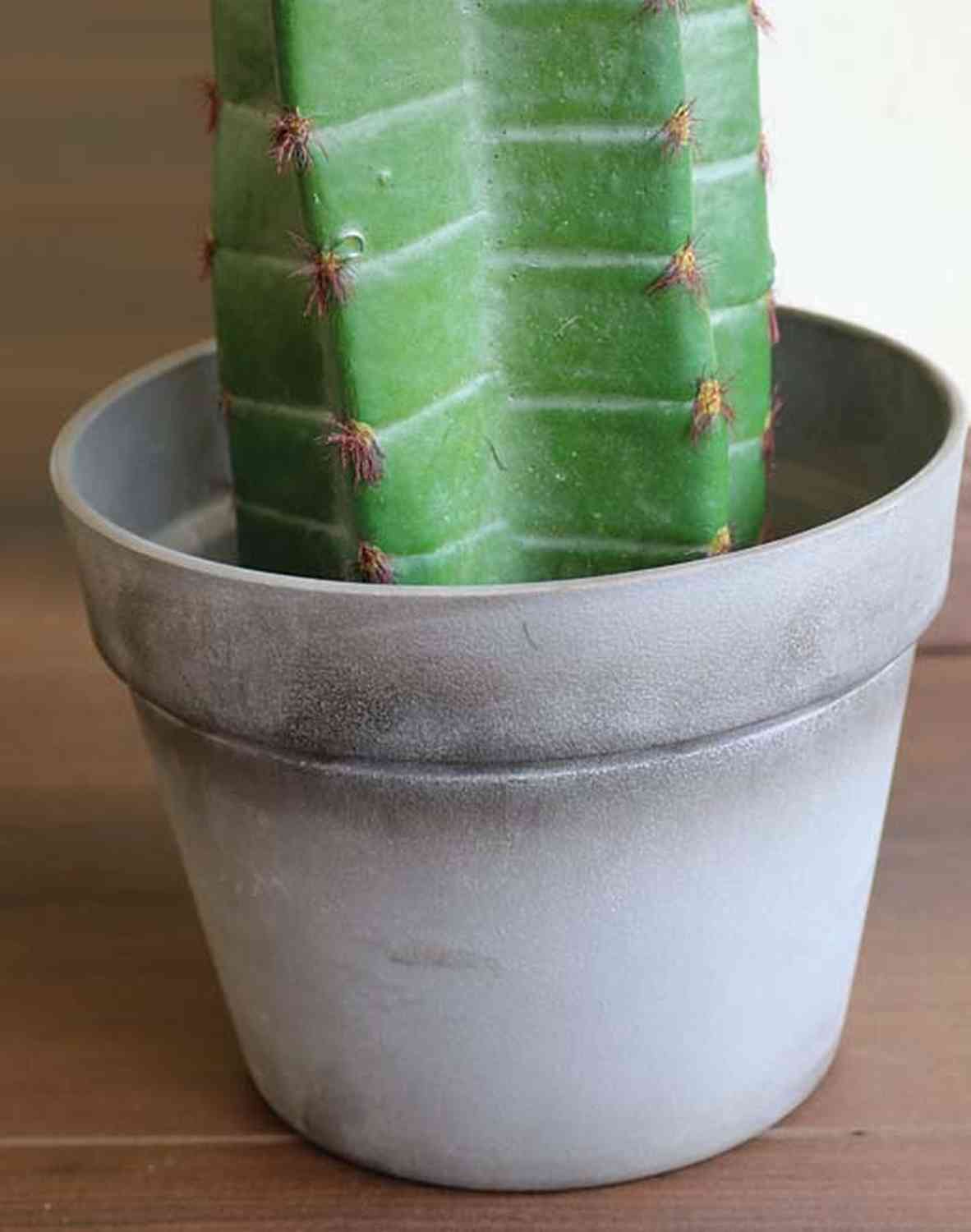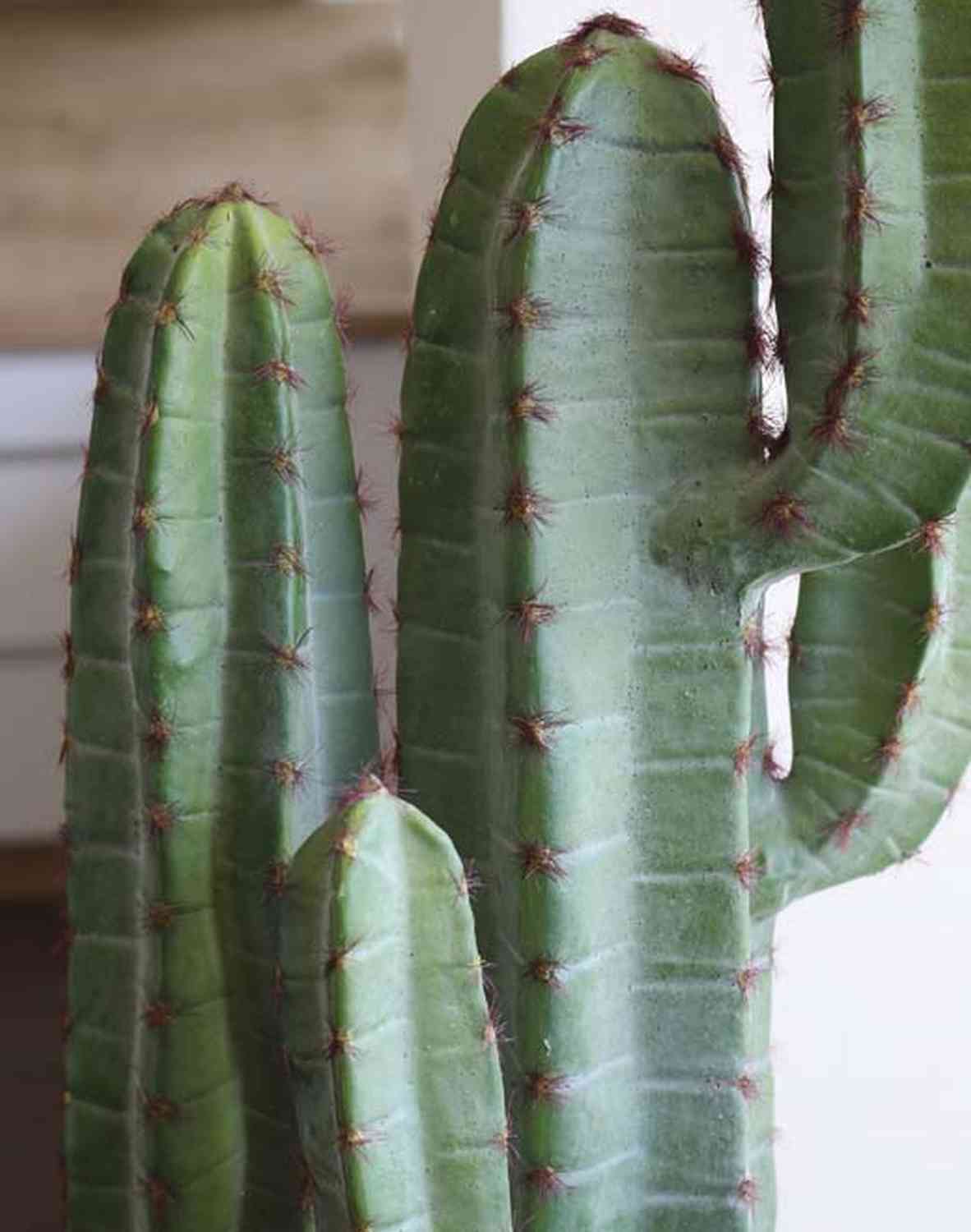 - Formado por una columna de planta con espinas rojas dispuestas en filas, el cactus está hecho de plástico de alta calidad