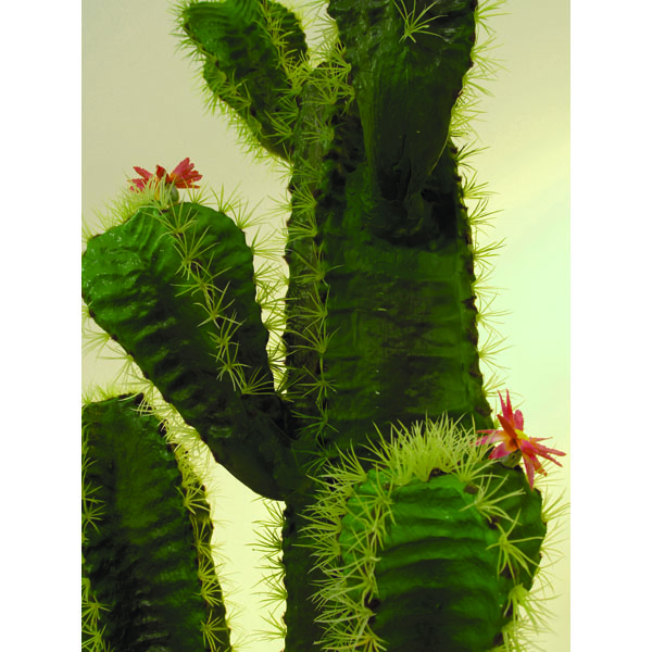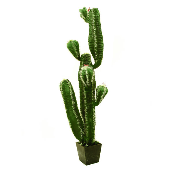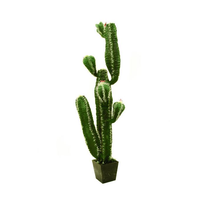 Simpático cactus mejicano con varias flores. El cactus artificial posee varios brazos y tiene una altura de 170 cm.
