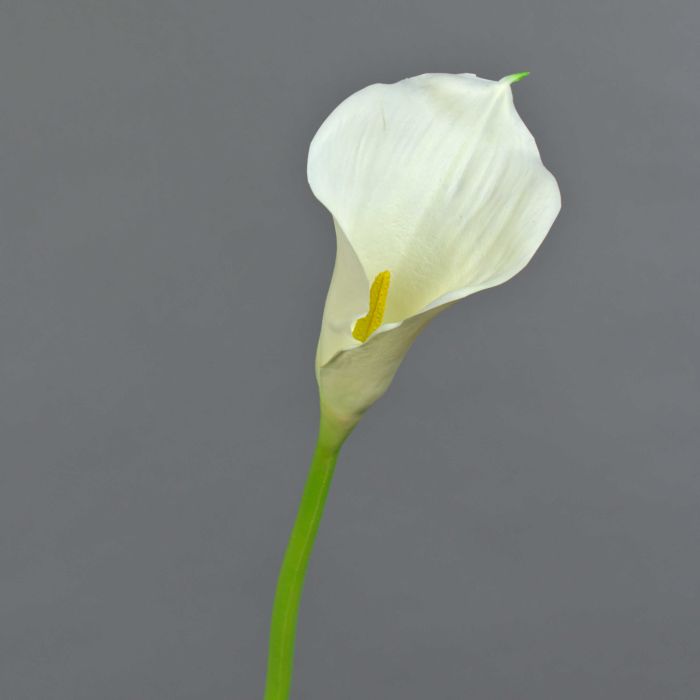 La gran cala (Araceae) decorativa con su flor de color crema y blanca resulta muy impresionante. La elegante planta artificial tiene una longitud de unos 70 cm.