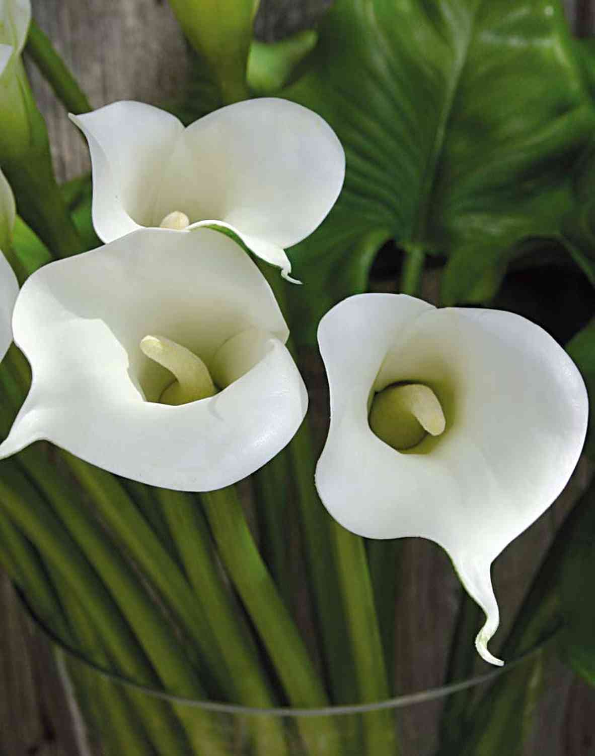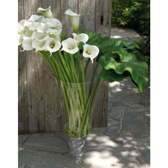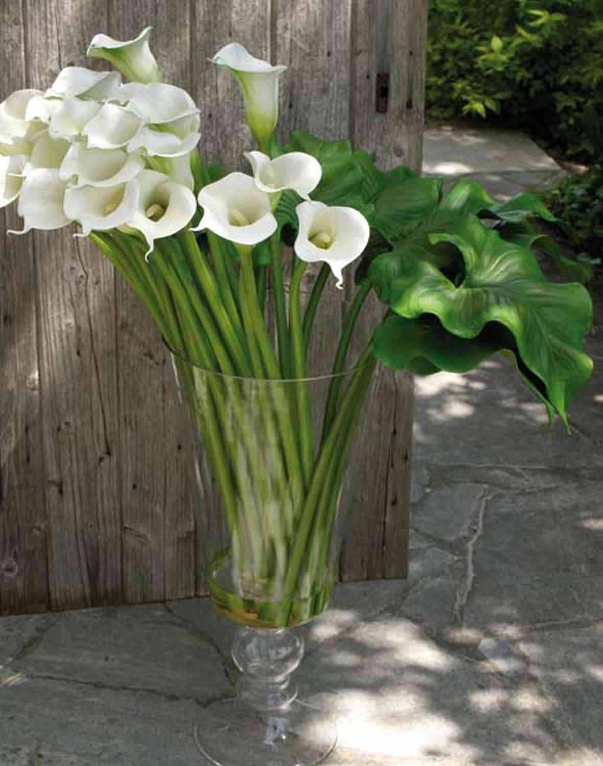 Las 21 calas blancas de plástico SHANNON son el centro de atención en casa con sus dos hojas en el jarrón con agua decorativa y una altura de aproximadamente 90 cm.