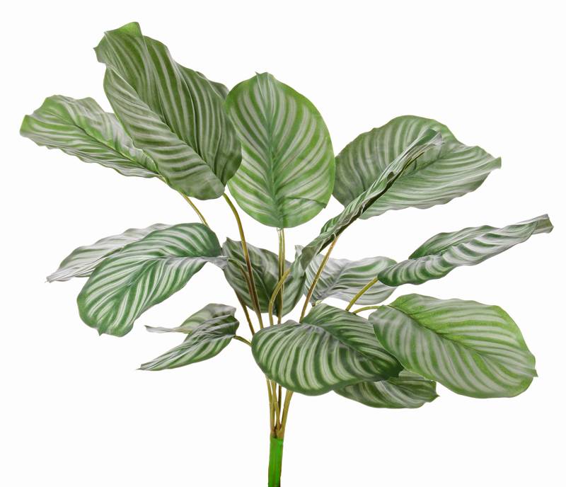 La planta de plástico Calathea ZAIDA tiene unas 15 hojas estampadas y mide unos 75 cm de altura. La planta falsa es muy frondosa y resulta fácil de combinar con otras plantas de forma individual.
