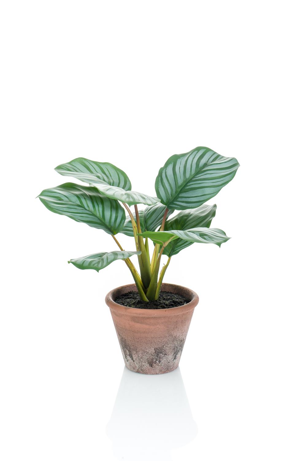 Calathea Orbifolia artificial ESMIE en maceta de terracota, verde-blanco, 30cm