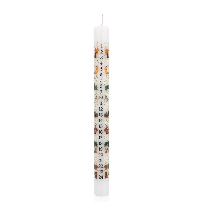 Calendario de Adviento con velas LAMBERTINA, días de Adviento impresos, blanco y multicolor, 25 cm, Ø 2,3 cm - Fabricado en Alemania