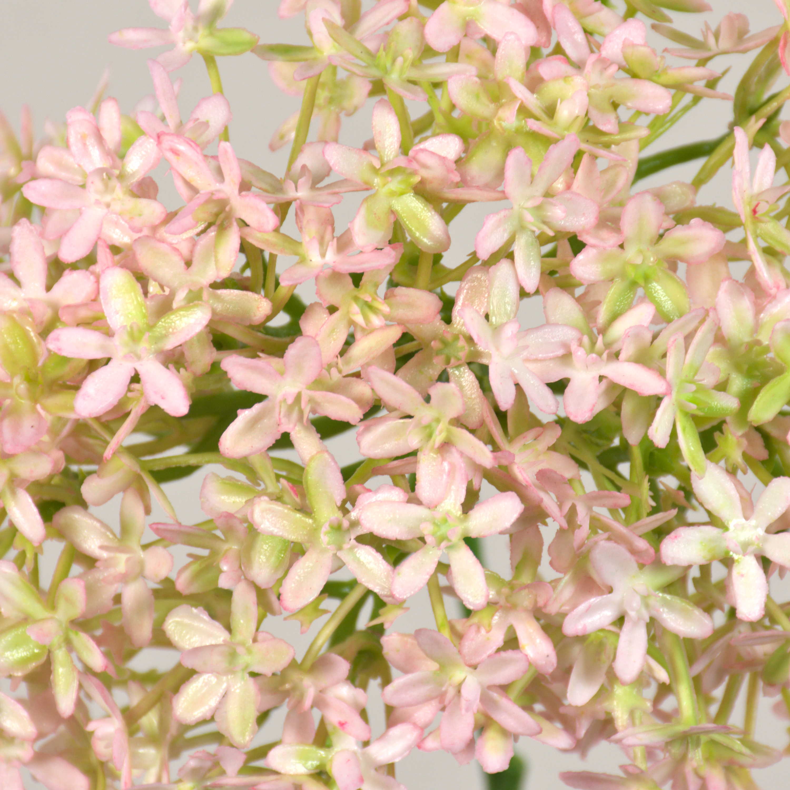 - Muchas florecillas en color rosa-verde de material artesanal de alta calidad